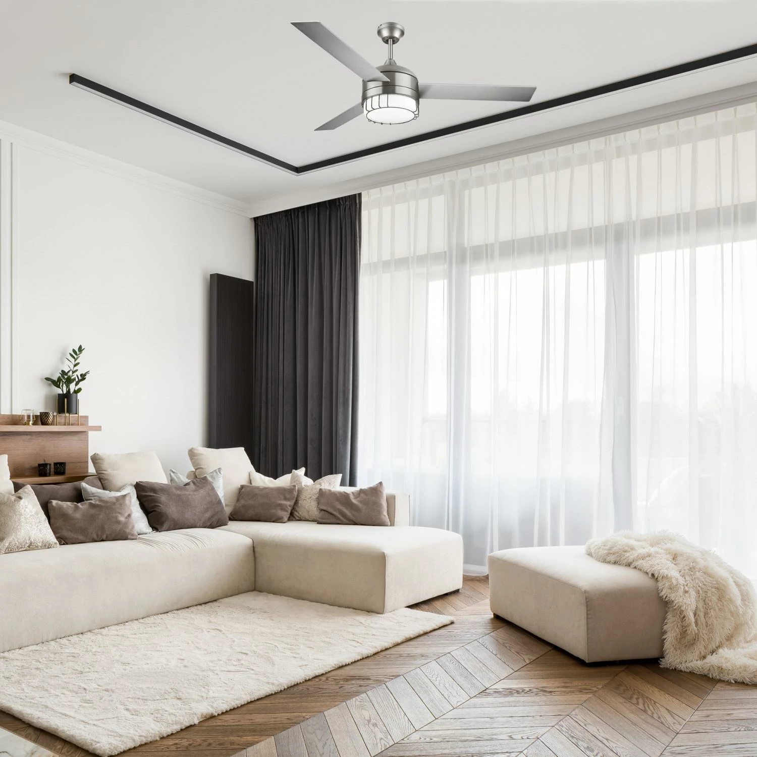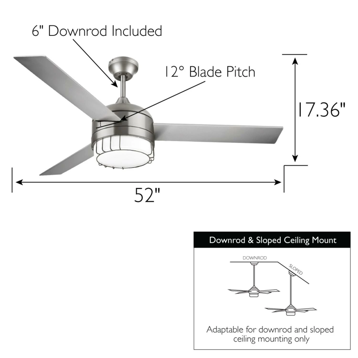 - Ideal for USE in medium to large sized rooms; dual-Mount adaptable for downrod and sloped ceiling use