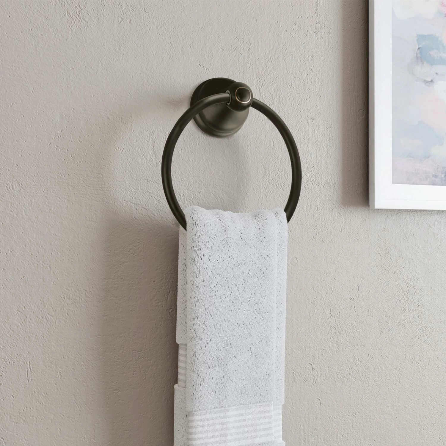 - Ez anchor Mounts are included with this towel ring for quick installation on drywall