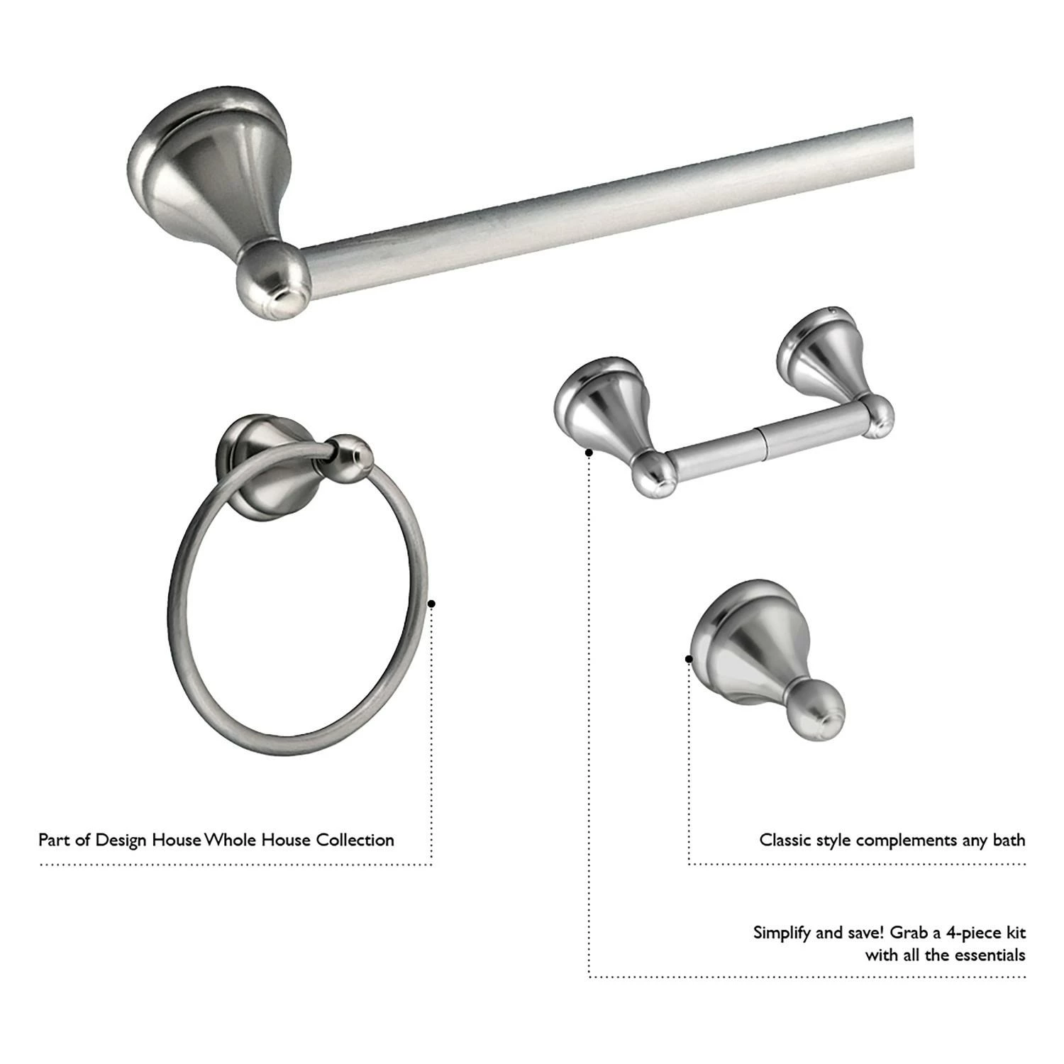 The Design House 532093 Allante Towel Ring adds an elegant accent to any bathroom wall with unique design and concealed screws for quality appearance….