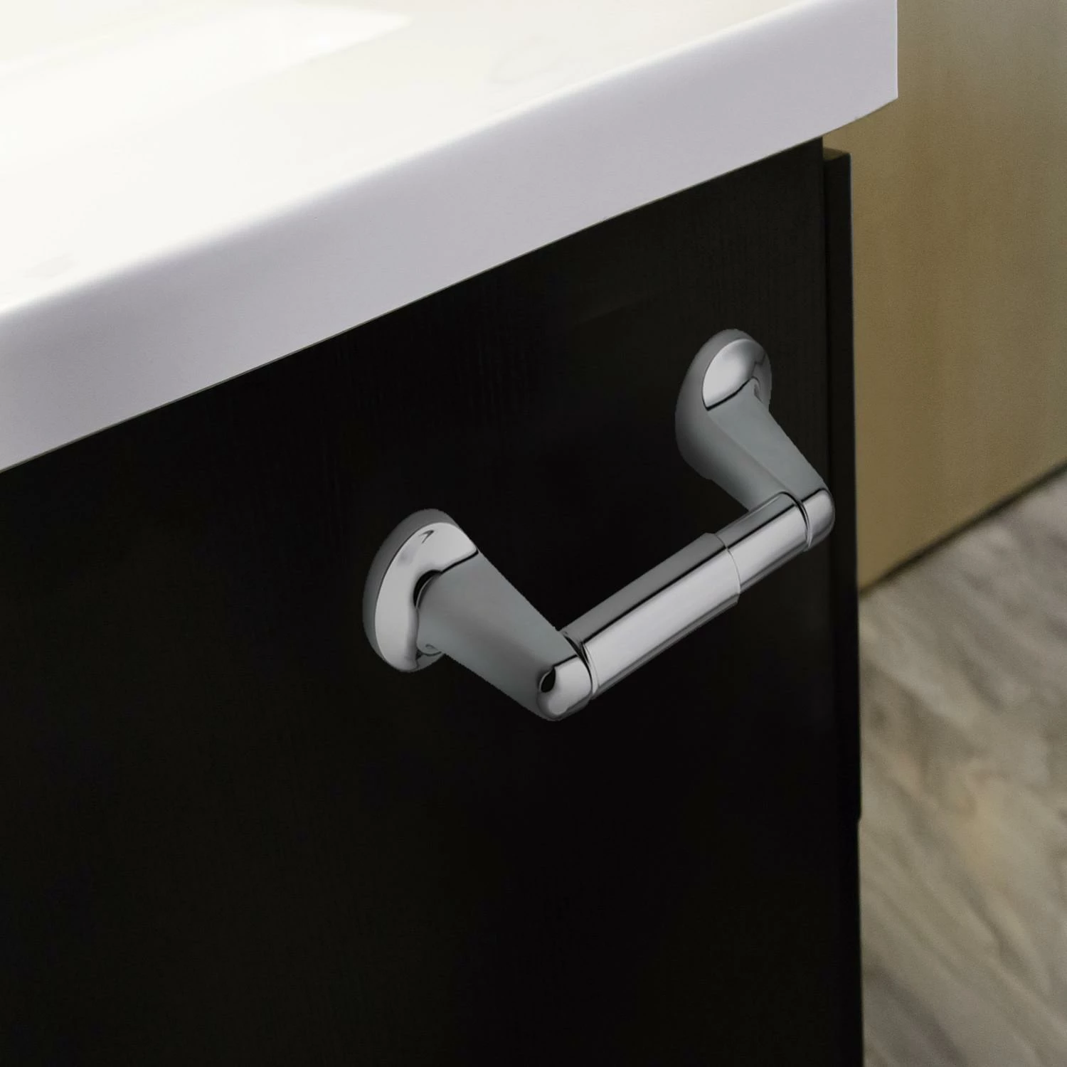 The Design House 558098 Alta Bay Toilet Paper Holder adds an elegant accent to any bathroom wall with a unique design and concealed screws for a quali…