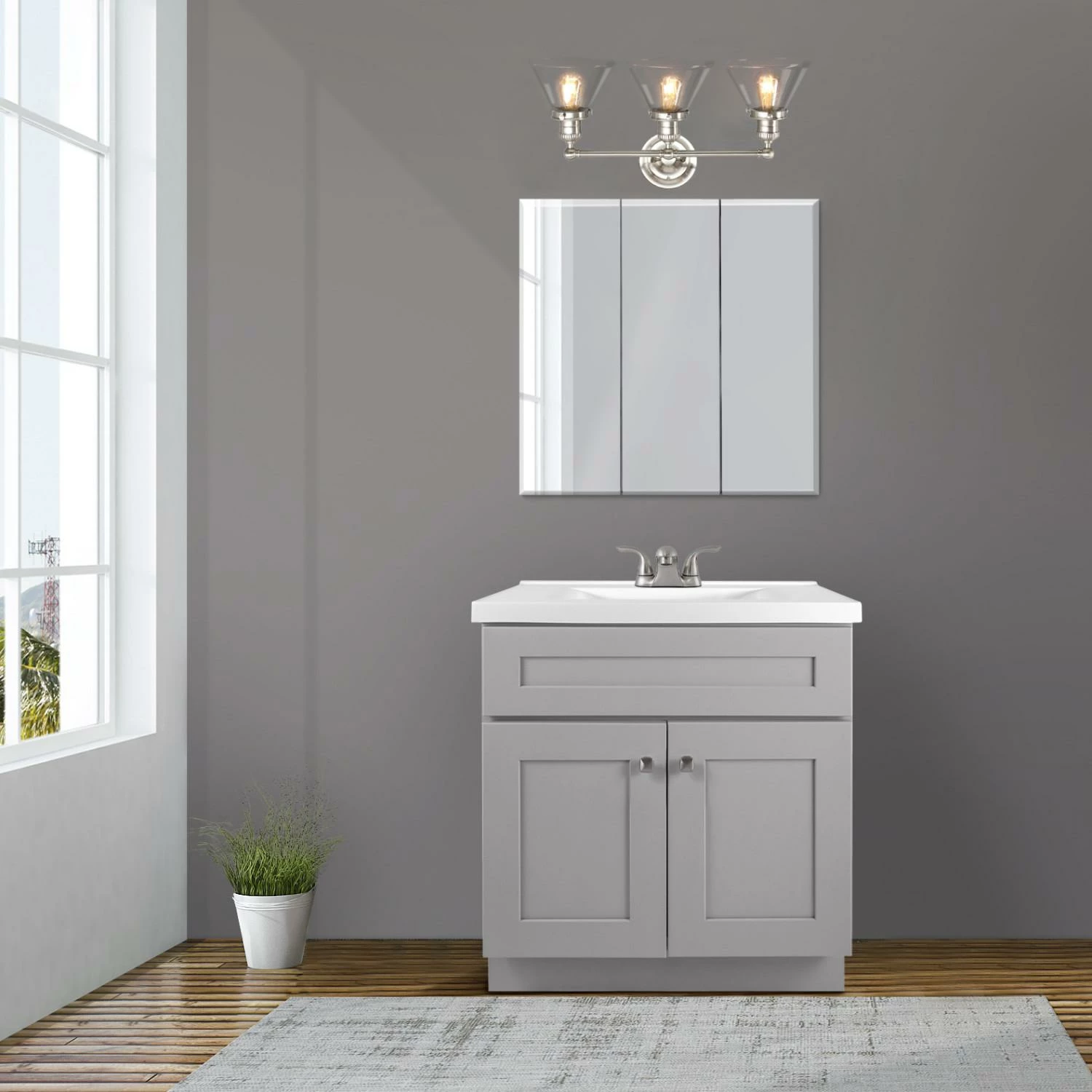The Design House 589036-SN Augustin 3-light bathroom vanity light features a transitional design with its satin nickel finish and cone-shaped seedy glass shades. The seedy glass conceals smudges, dirt, and fingerprints while capturing a brilliant glow of light. Pair this light with an Edison style light bulb to compliment the design aesthetic. This light is rated for 120-vlts and uses (3) 60 watt medium base bulb or LED equivalent (not included). Designed and manufactured by Design House, the trusted source for quality lighting, hardware, plumbing, kitchen, and bath products for every taste and budget.