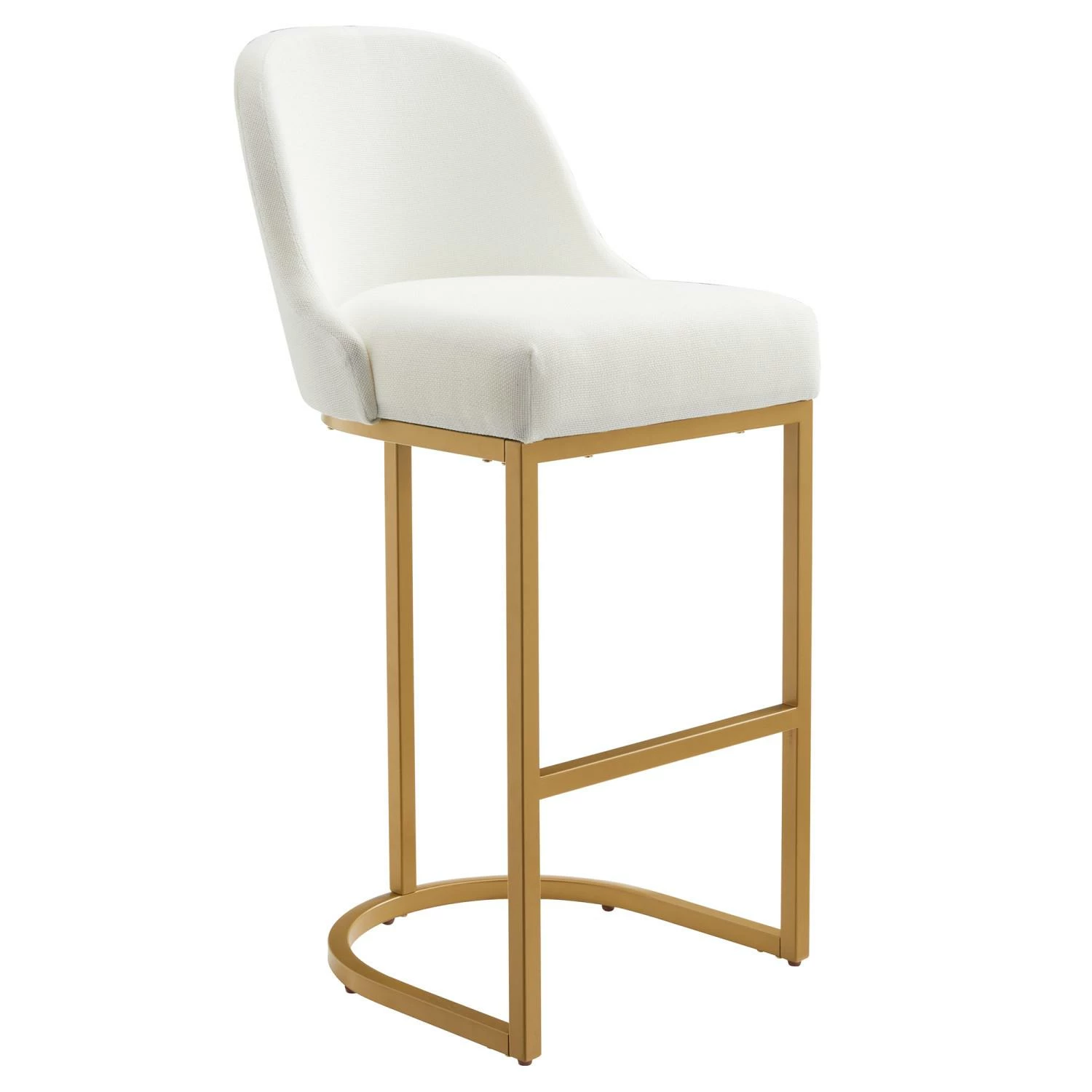 The Leick Home Barrelback Bar Stool is sturdily built and stylishly appointed. This barstool not only provides a comfortable seat but is also a veritable feast for the eyes with textural juxtapositions of lustrous steel and clean white upholstery. The crowned high density foam seat meets a wrap around, barrelback backrest and a durable, heavy gauge steel base with curved elements. This bar stool is perfect for elevated kitchen counters, high top tables, and bars. Luxurious comfort meets modern design to give you the perfect balance between contemporary and cozy. Designed and manufactured by Leick Home, the trusted source for quality home furnishings for every taste and budget.