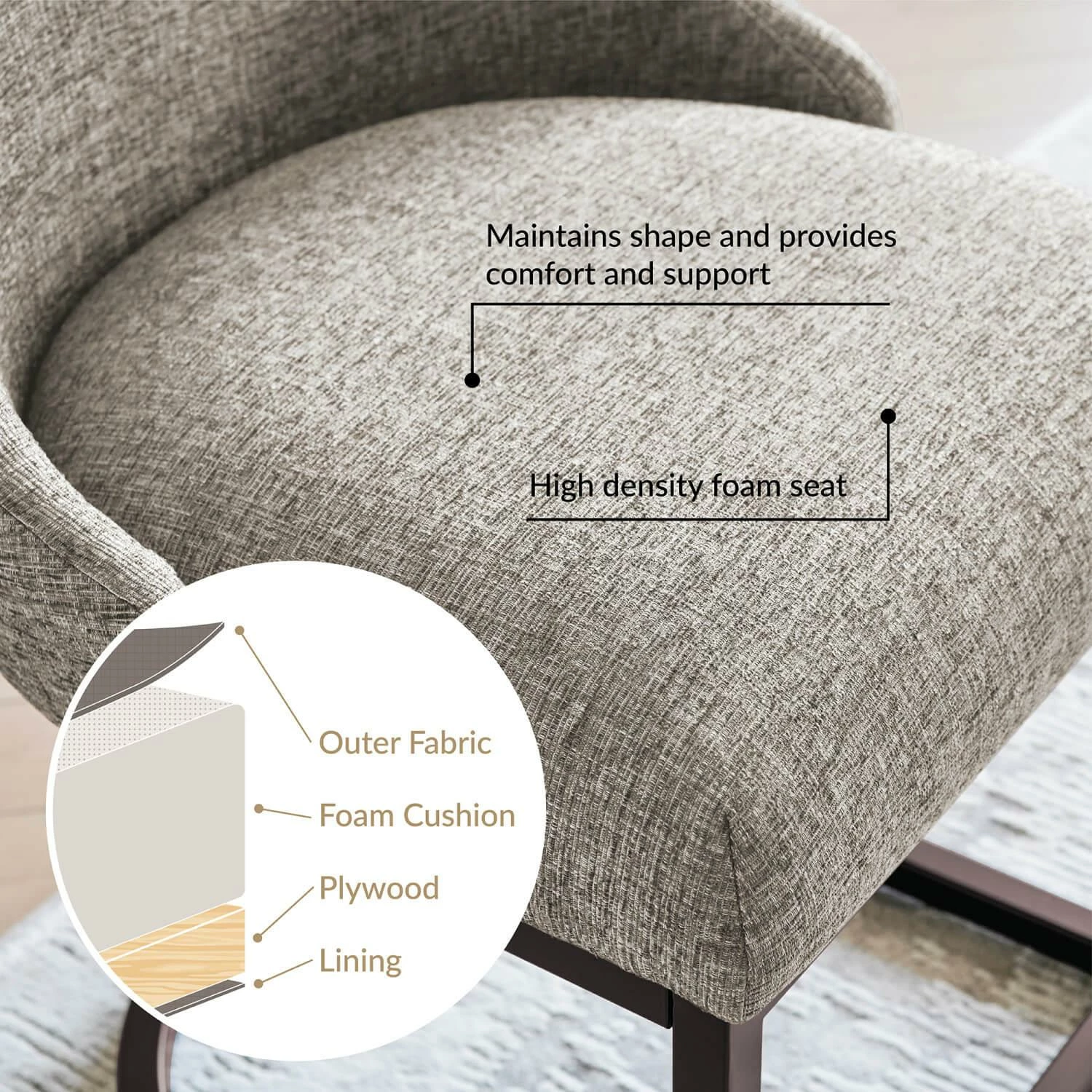 - Comfortable Seat: High density foam seat cushion maintains its shape over time and supportive barrelback design provides comfort for everyone