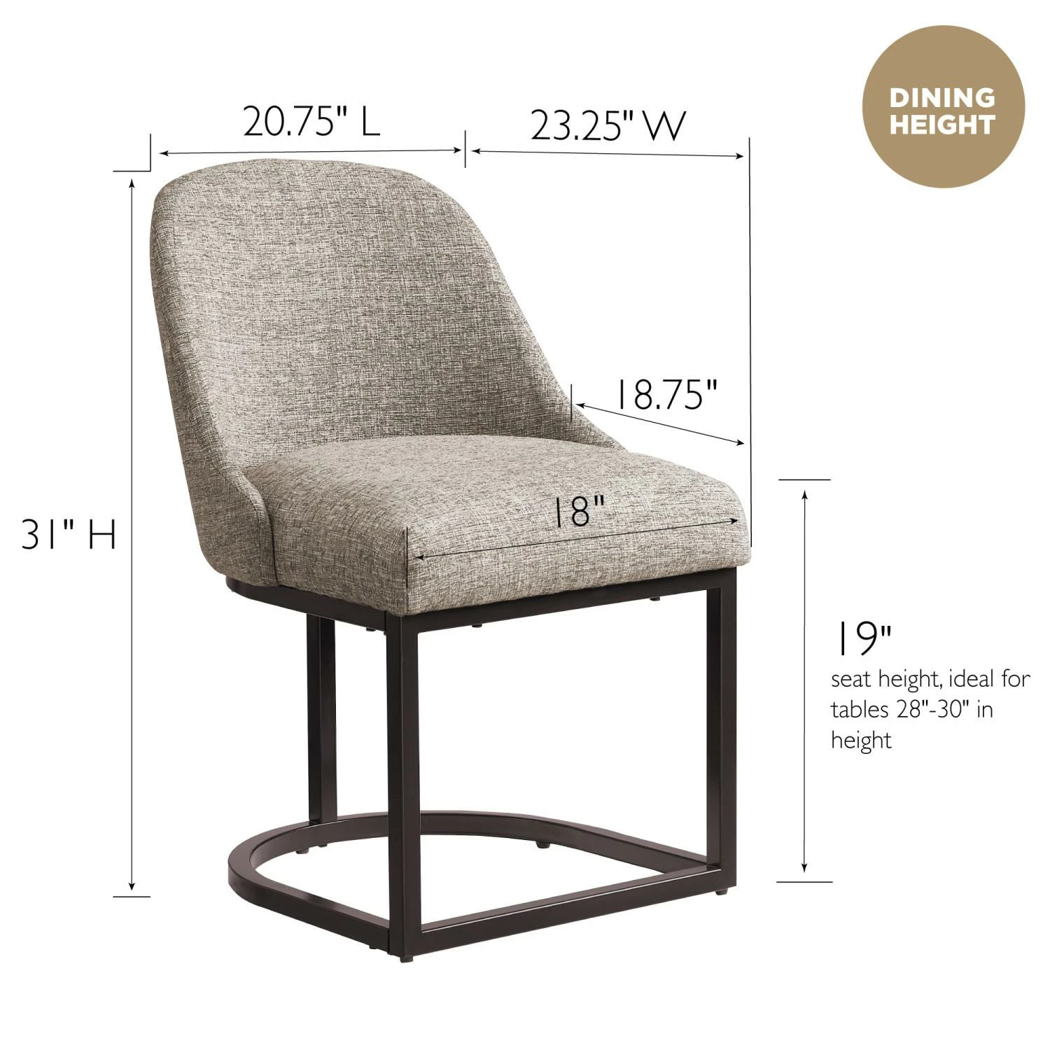 - Dining Height Chair: Measures 20.75″ L x 23.25″ D x 34″ H and is compatible with counters and tables 28″ to 30″ high; comes in a set of two