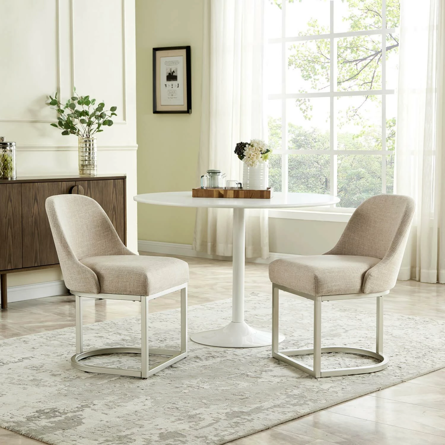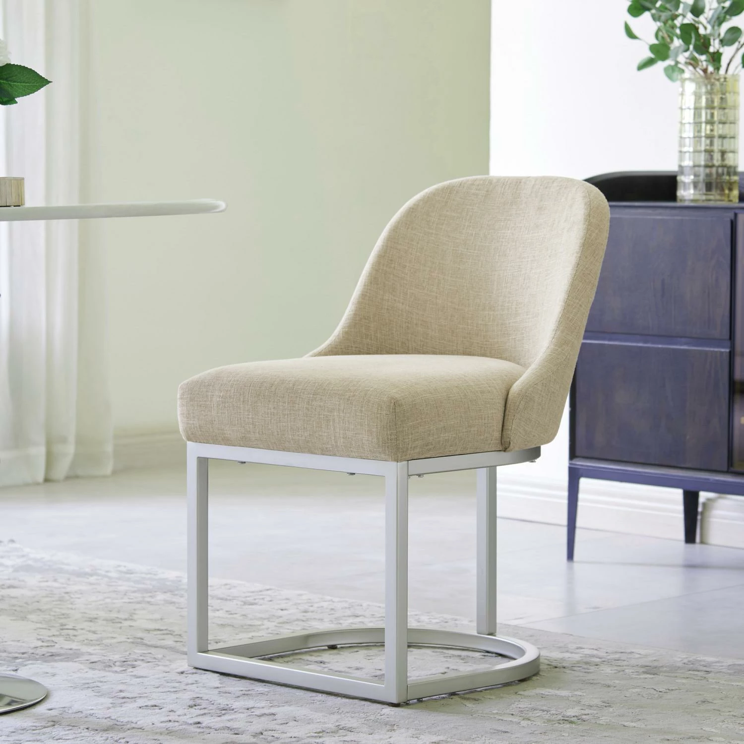 - Modern Design: Oatmeal linen upholstery with curved metal elements complement many decor styles including modern and contemporary to give you a versatile piece for your home