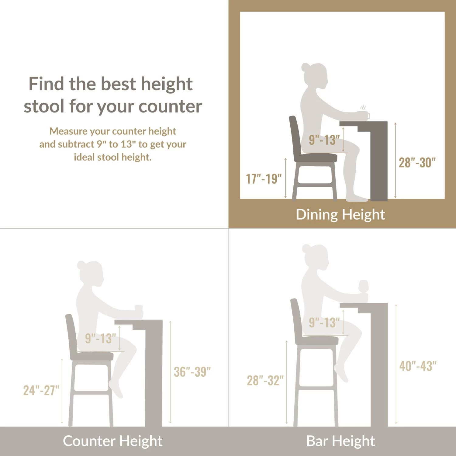 - Dining Height Chair: Measures 20.75″ L x 23.25″ D x 31″ H and is compatible with counters and tables 28″ to 30″ high; comes in a set of two