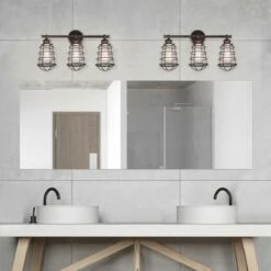 Ajax 3-Light Coffee Bronze Vanity Light With Kimball 3-Piece Satin Black Bathroom Accessory Kit