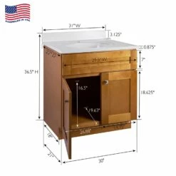 Brookings Vanity With White Marble And Single Hole Top In White, Fully Assembled, 31-Inch