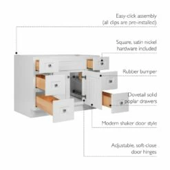 Brookings Ready-to-Assemble Vanity Without Top In White, 48-Inch