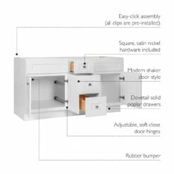 Brookings Ready-to-Assemble Vanity Without Top In White, 60-Inch