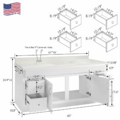 Concord Vanity In White With Cultured Marble Top, Fully Assembled, 60-Inch