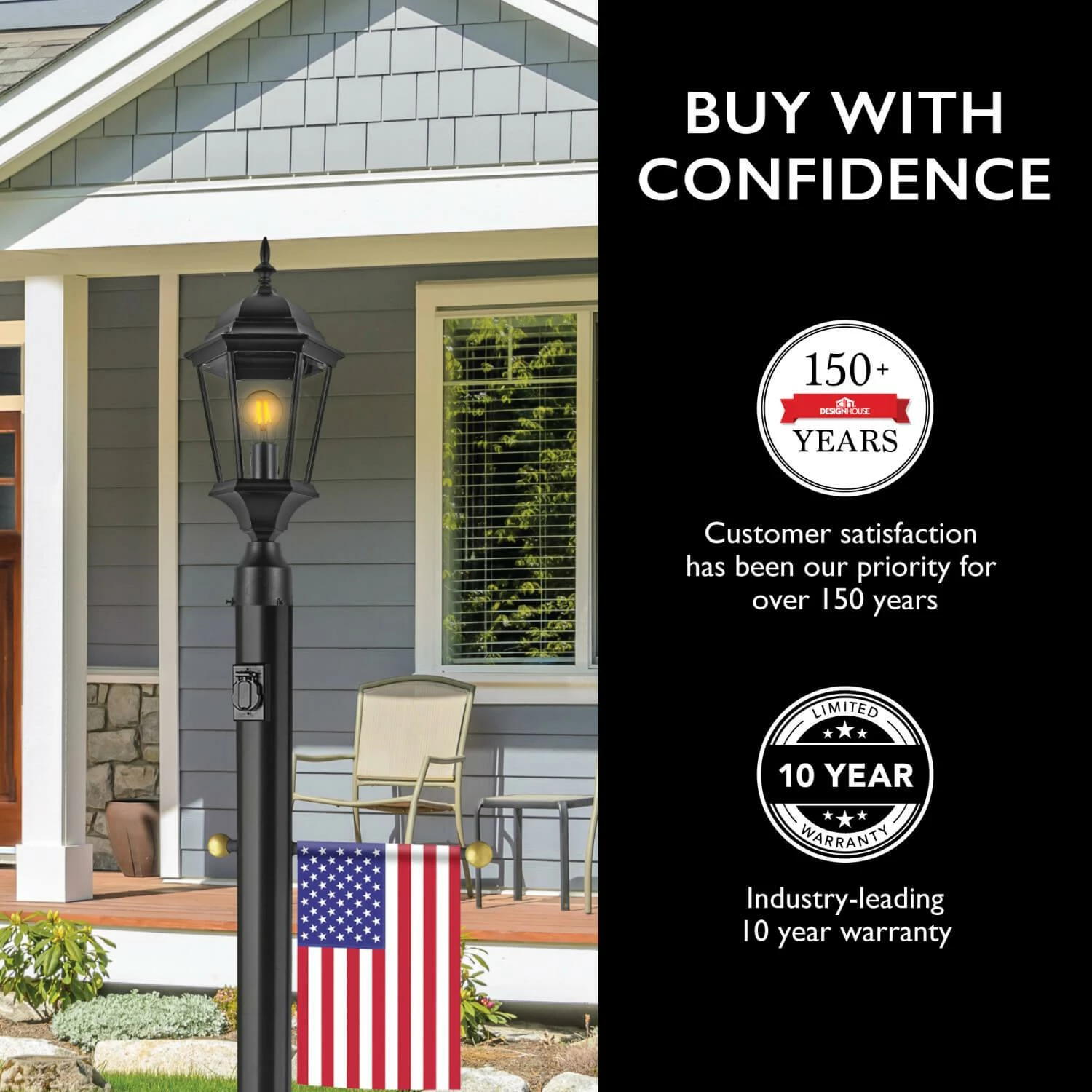 The Design House Outdoor Lamp Post with outlet will match siding, brick, wood paneling or stone with its classy black finish to add to the curb appeal…