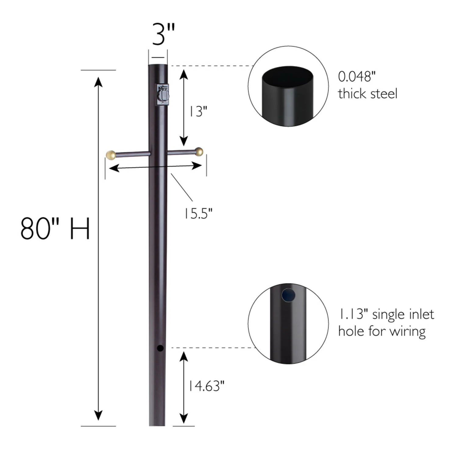 - Weather Resistant: 1.2mm-thick with 3-inch diameter anti-UV, salt spray tested and powder coated steel exterior for long lasting outdoor use