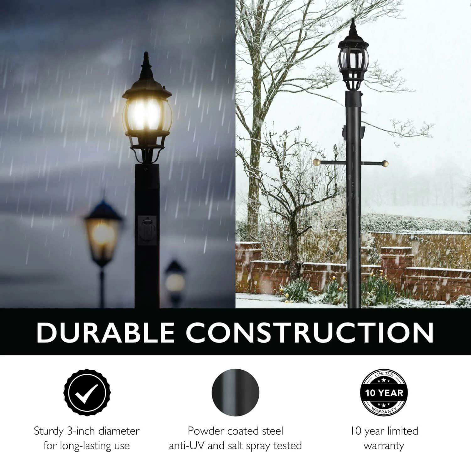 - Weather Resistant: 1.2mm-thick with 3-inch diameter anti-UV, salt spray tested and powder coated steel exterior for long lasting outdoor use