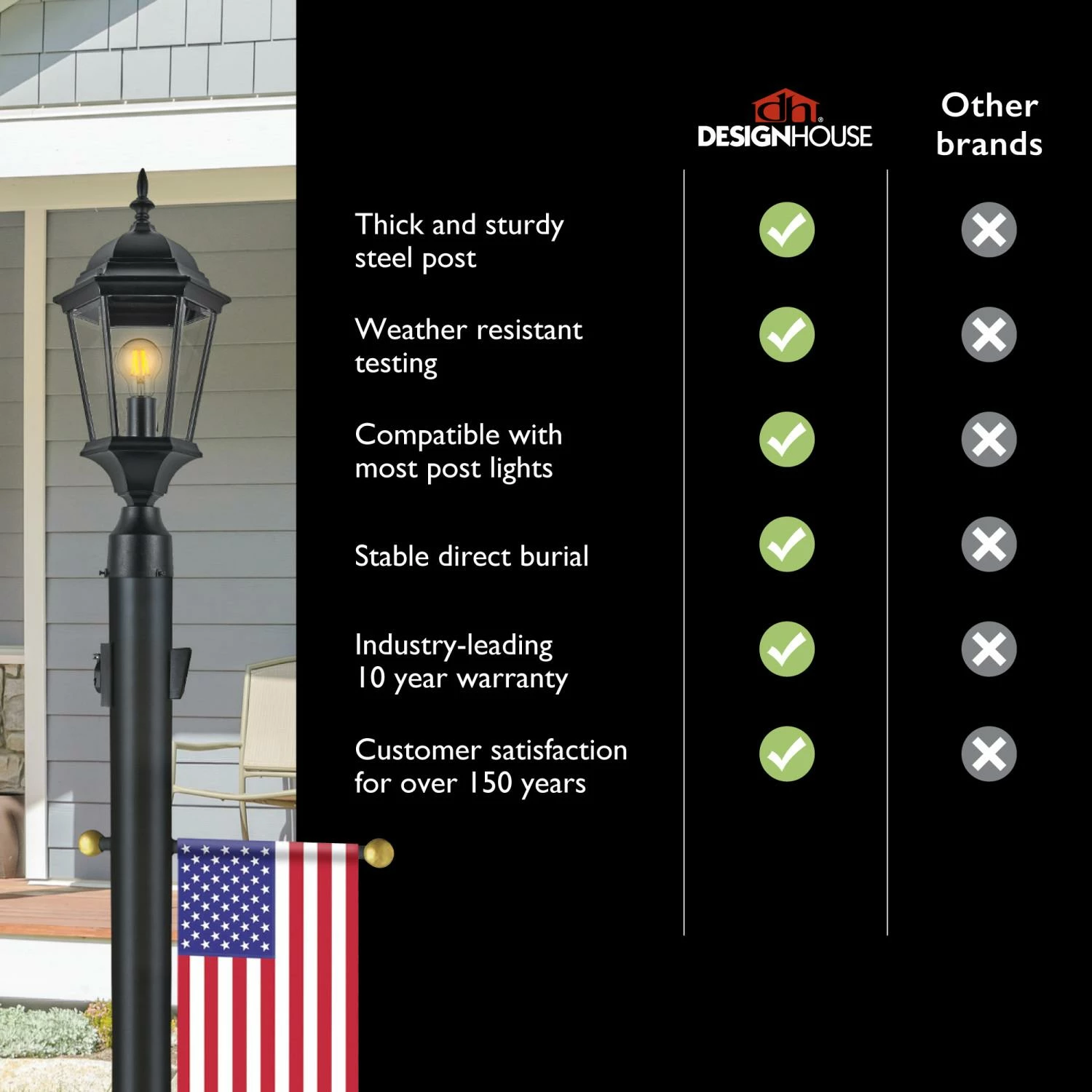 - Add Curb Appeal: Lamp post with 15.5-inch plastic decorative cross-arm for hanging light weight items such as flags or signs for the driveway, yard, or by the front porch