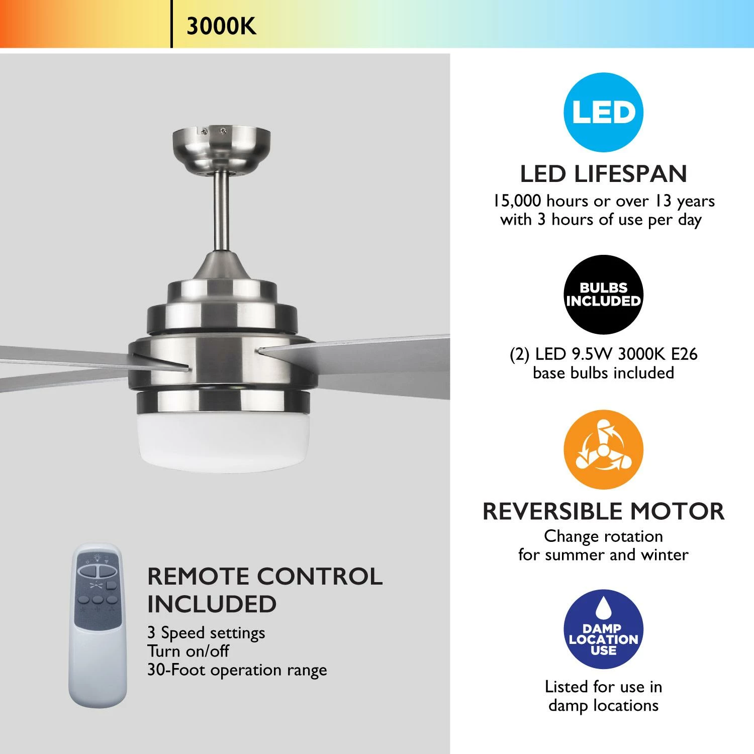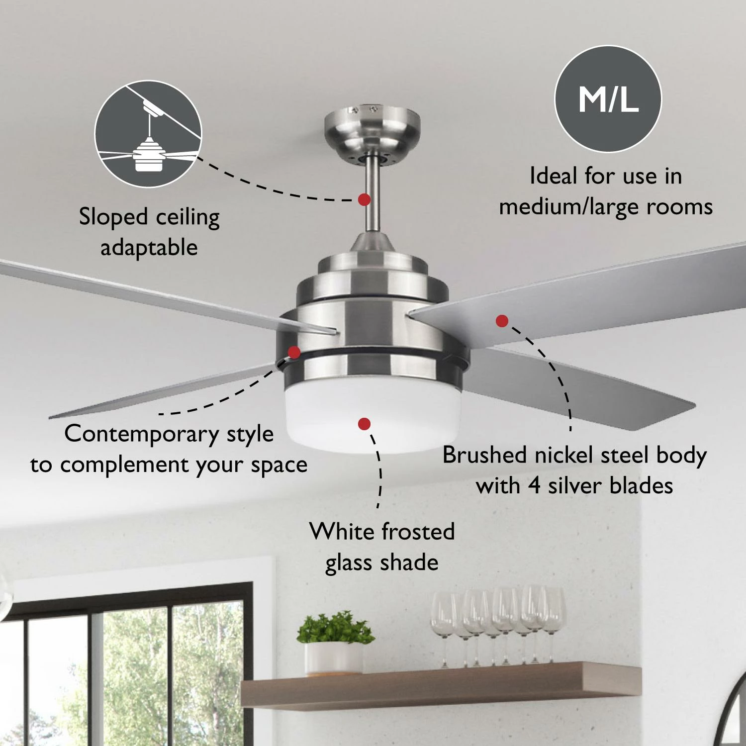- Contemporary indoor 52-inch ceiling fan Ideal for medium to large sized rooms
