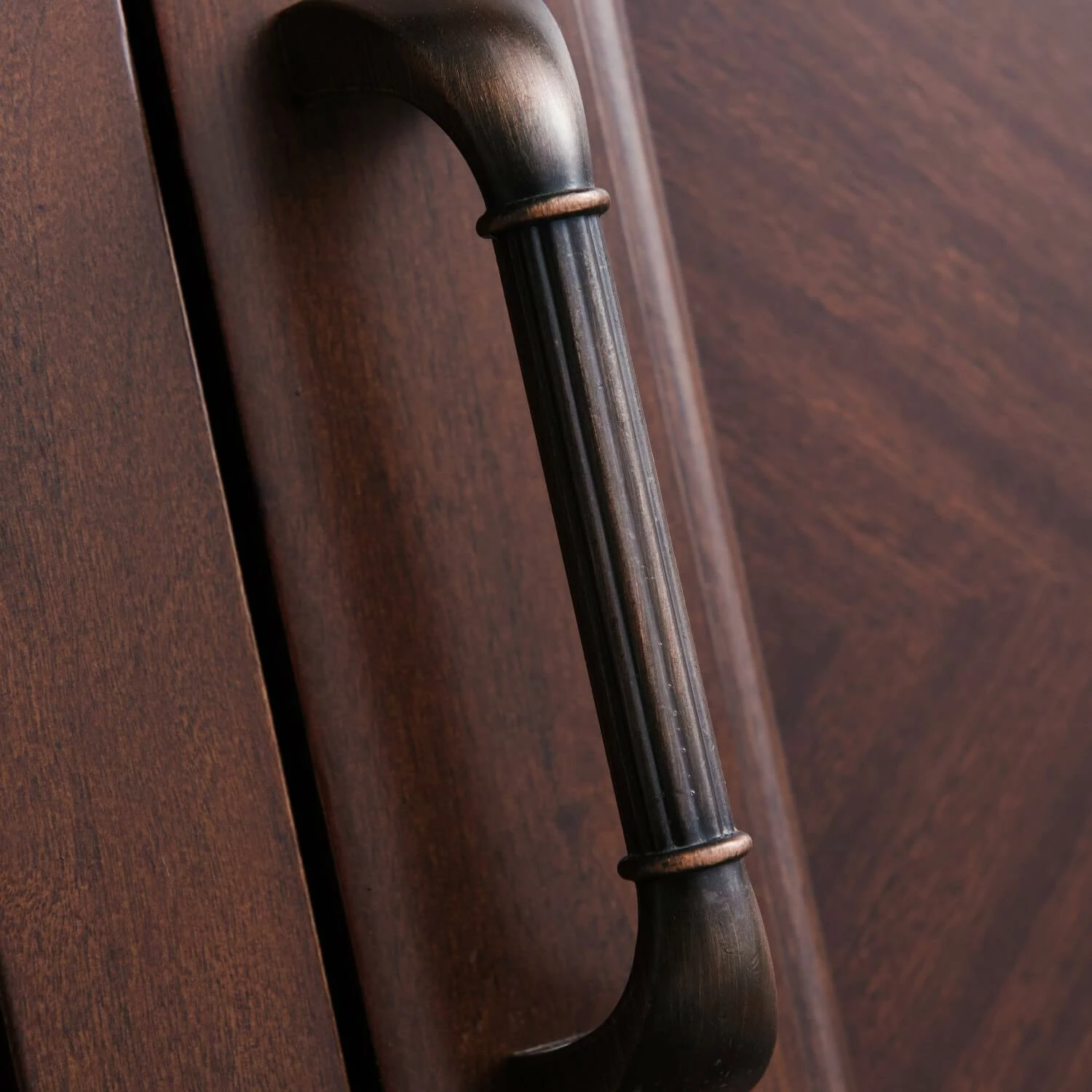 Sustainable American Hardwoods are complemented with bookmatched mahogany veneers in this dressed up tradtional beauty. Reeded split turnings, Moulde…