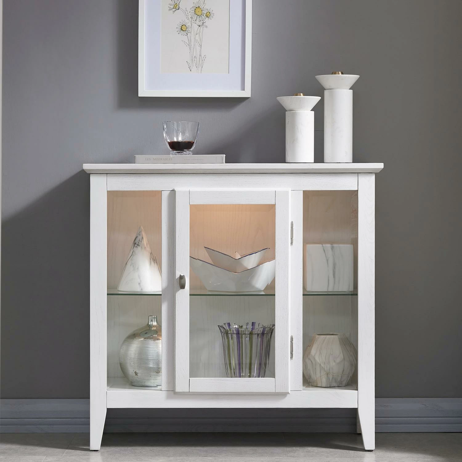 Perfectly scaled for entryways in apartments, condos and other smaller spaces, this lighted display cabinet brings ambiance and style to any space. Cl…