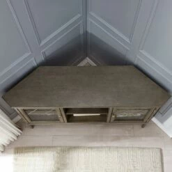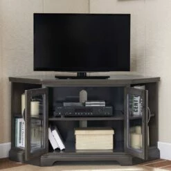 Corner TV Stand With Pewter Base In Gray, 58-Inch