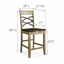 Counter Height Stool With Two-Tone Crossback And Scooped Wood Seat, Set Of 2