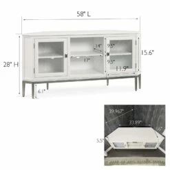 Corner TV Stand With Pewter Metal Base In Cottage White, 58-Inch