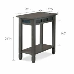 Side Table With AC/USB And USB-C Fast Charging In Smoke Gray And Black Slate