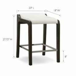 Wood Stool With Ivory Faux Leather Seat In Buffed Pecan, Set Of 2