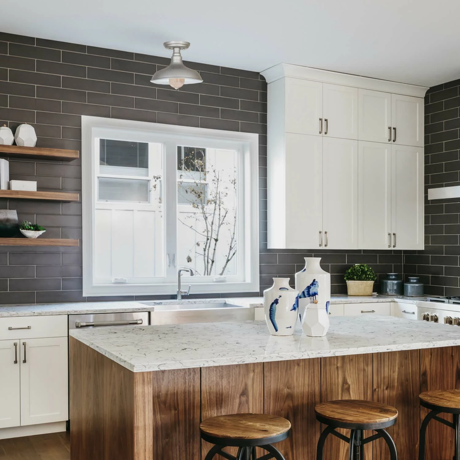 The Design House 519876 Semi-Flush Ceiling Light features a modern design and a painted galvanized finish with a metal shade. The ceiling light offers…