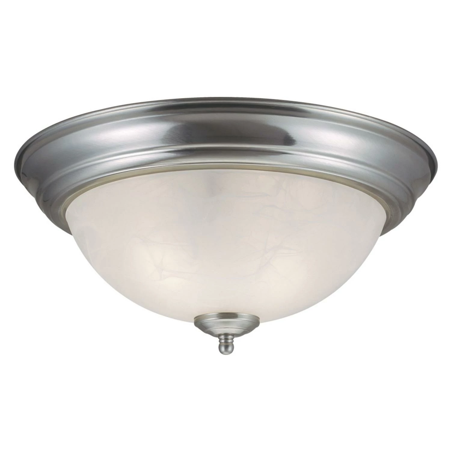 - Traditional ceiling light has a modern satin nickel finish with a dome-shaped alabaster glass shade