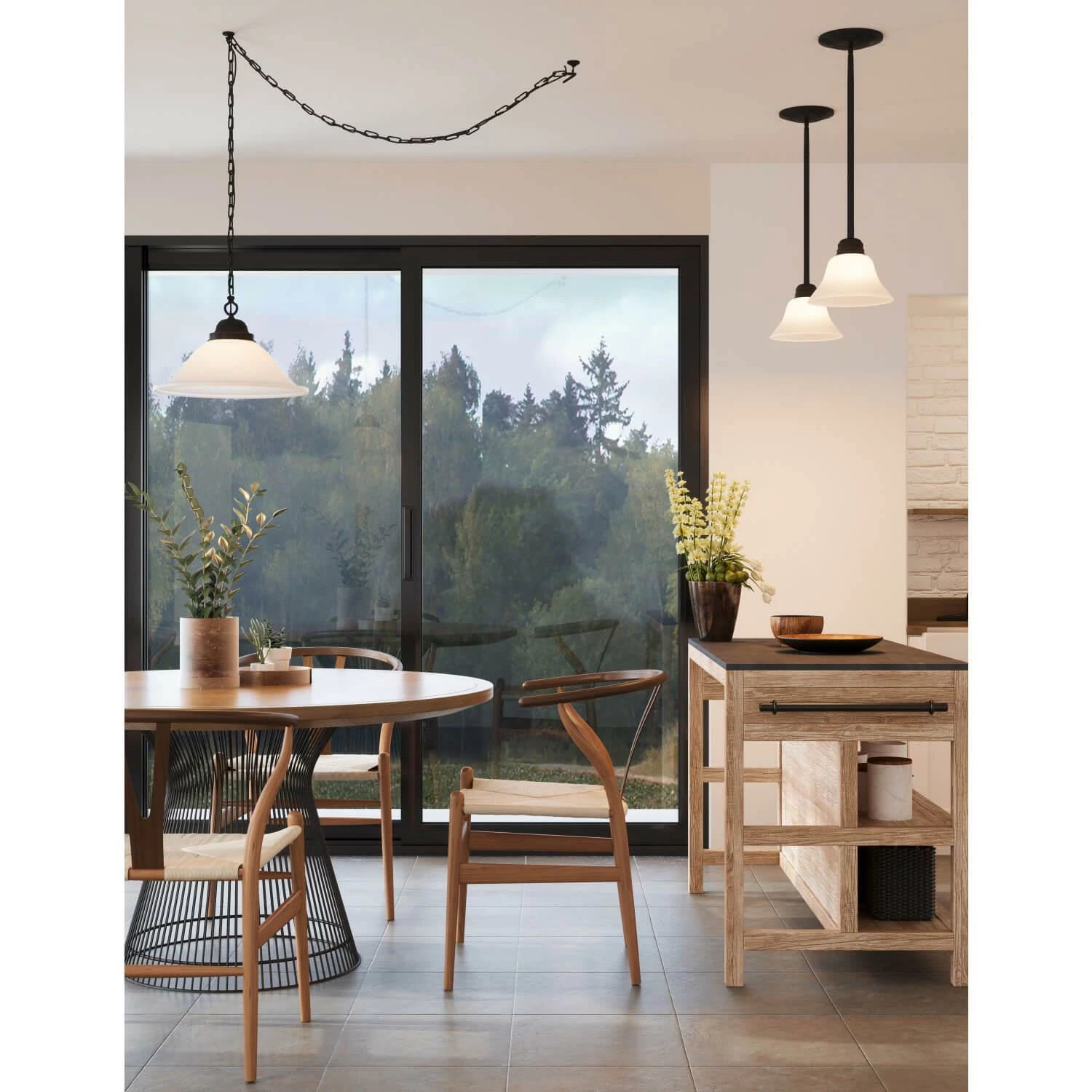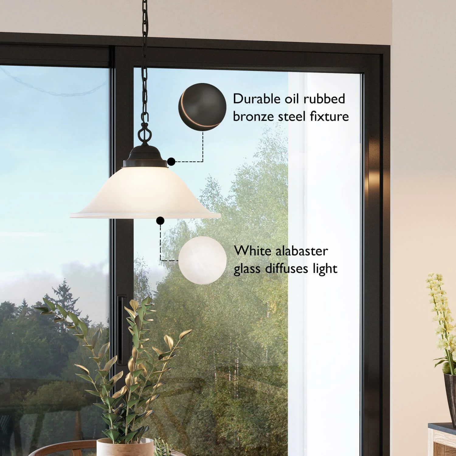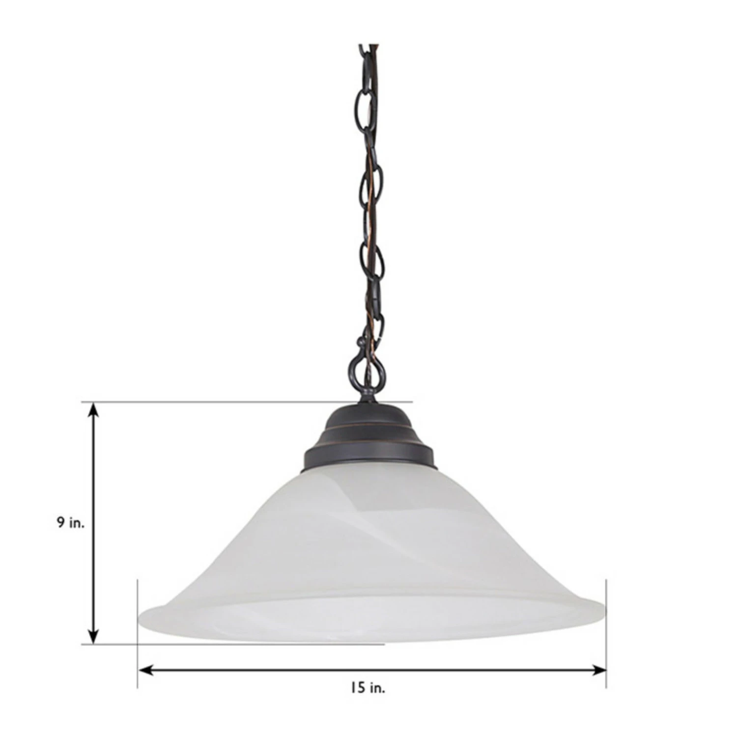 The Design House 517664 Millbridge Large Pendant is made of formed steel, soft alabaster glass, and finished in oil-rubbed bronze. This 1-light ceilin…