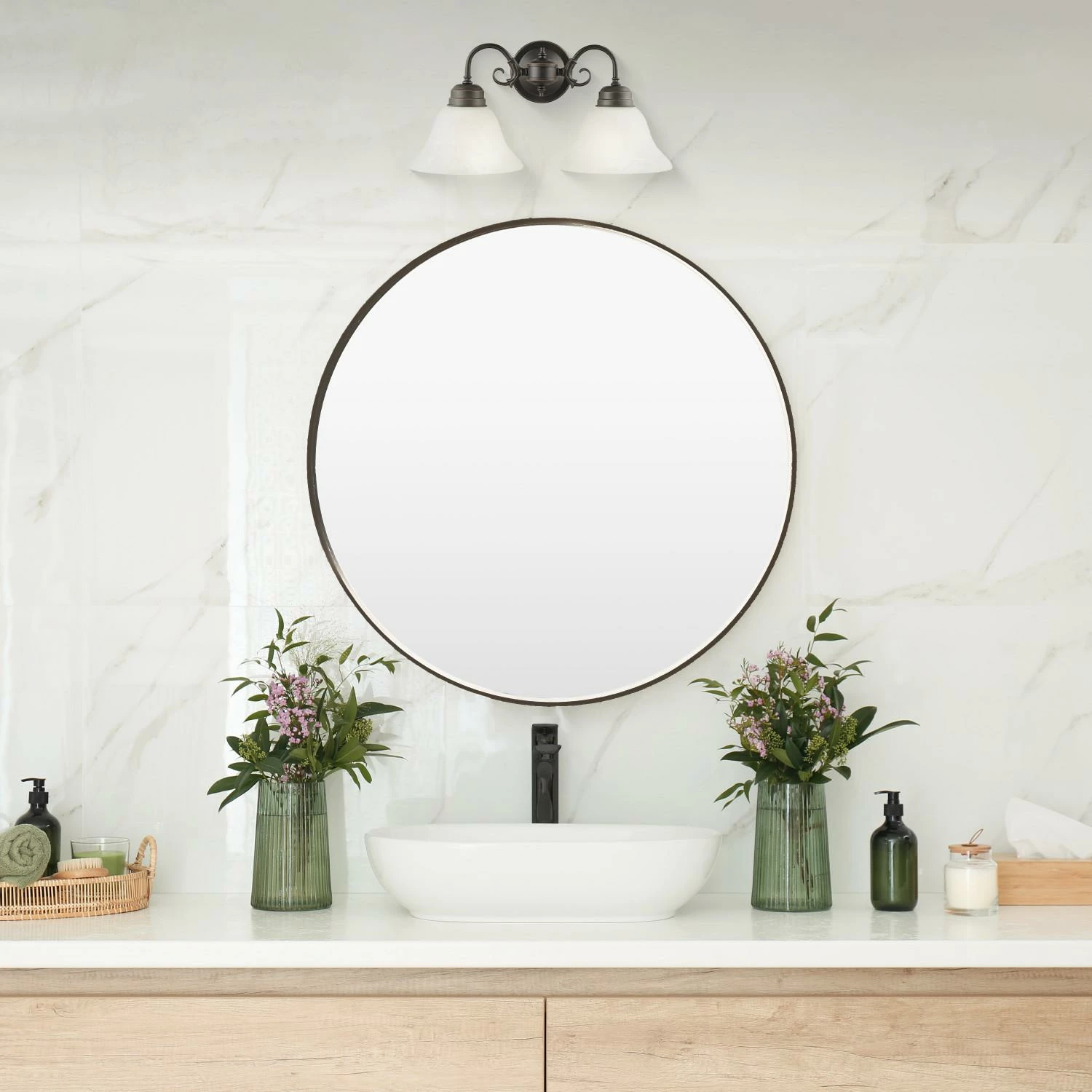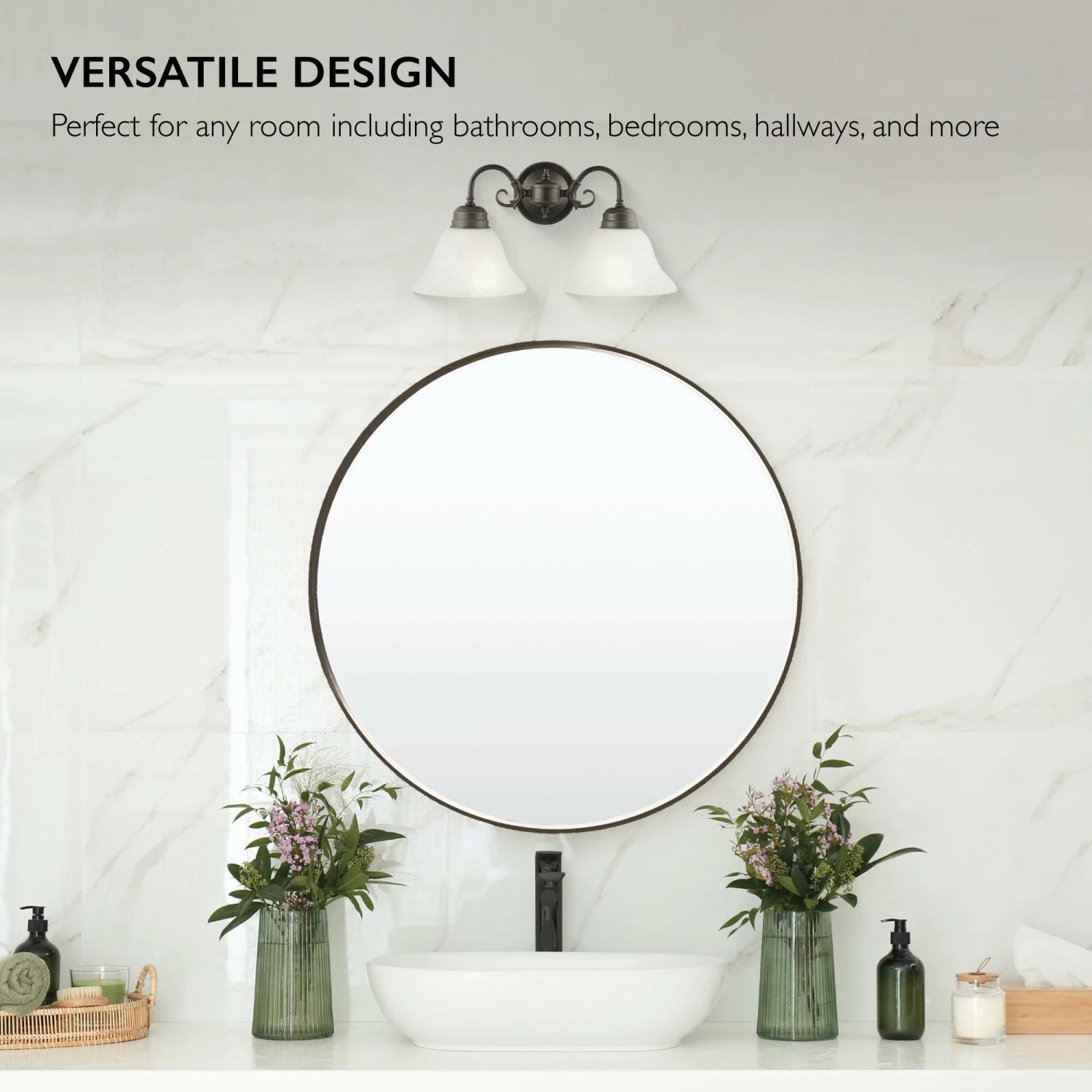 - Two Light Wall Light: Uses two 60-watt medium base bulbs or LED equivalent (not included)
