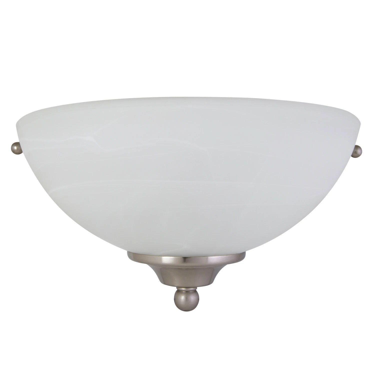 - Traditional wall light has a modern satin nickel finish with a bell-shaped alabaster glass shade and can be mounted facing up or down depending on location and preference