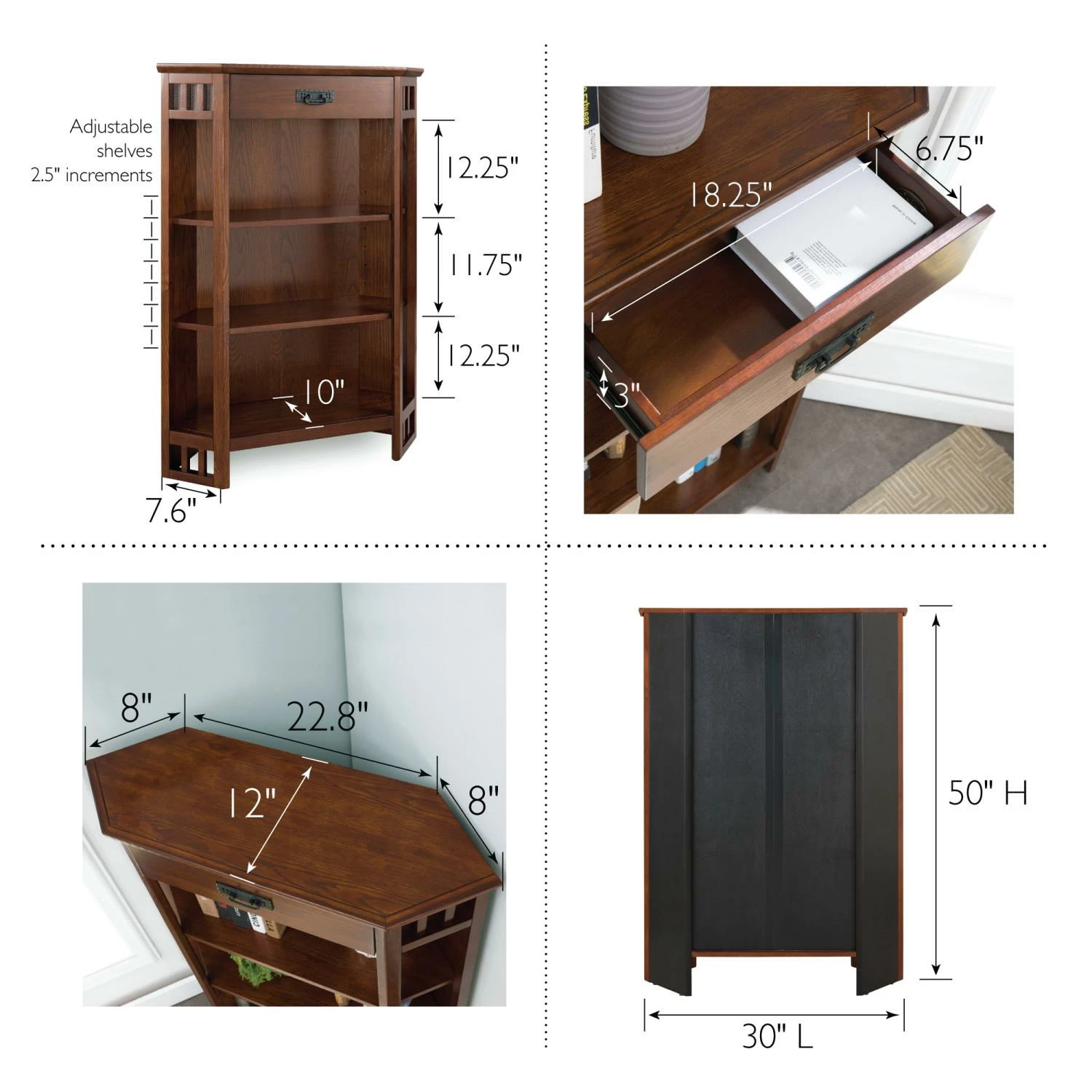 - Match Any Style: This Mission style corner bookcase with anti-tipping safety device can work in many home design aesthetics including traditional, arts and crafts, and contemporary