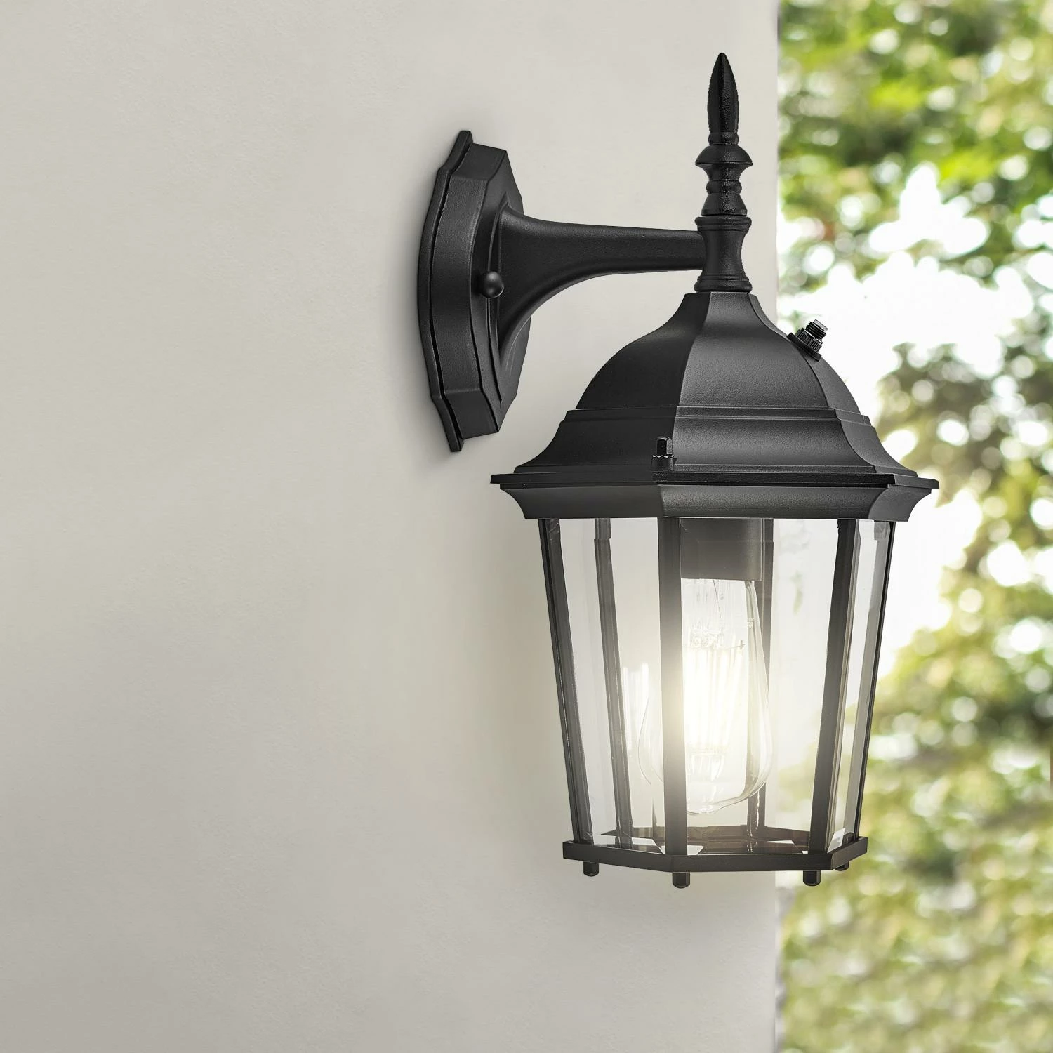 - Classic Design: Traditional style uplight with black finish and clear beveled glass works well with a wide variety of home designs and outdoor decor