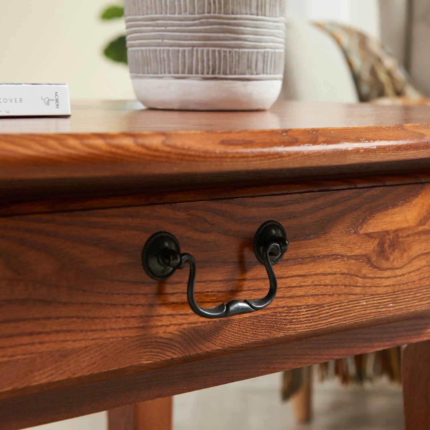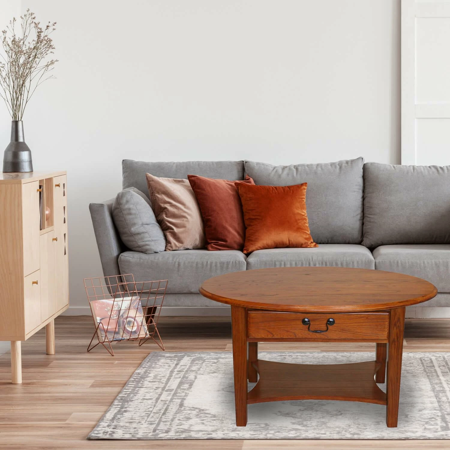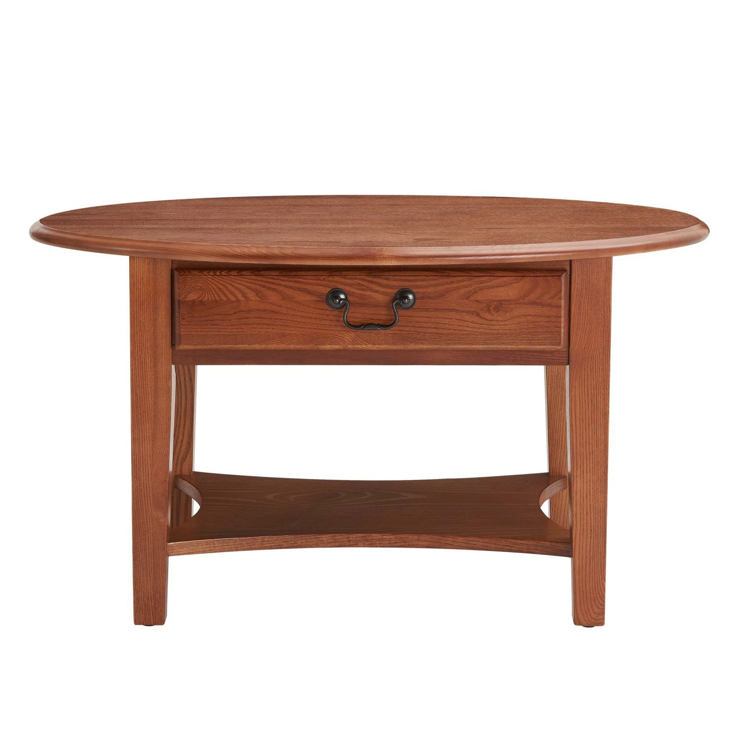 Need a coffee table in a compact space? Consider this oval shape table which will keep to itself no sharp corners to bump against, a tightly cropped top designed to stay clear. Add three layers of service top, drawer storage and lower display shelf all built into a sturdy package. Designed and manufactured by Leick Home, the trusted source for quality home furnishings for every taste and budget.