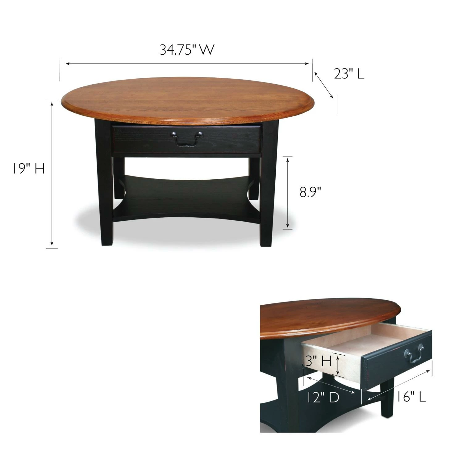 Need a coffee table in a compact space? Consider this oval shape table which will keep to itself no sharp corners to bump against, a tightly cropped top designed to stay clear. Add three layers of service top, drawer storage and lower display shelf all built into a sturdy package. Designed and manufactured by Leick Home, the trusted source for quality home furnishings for every taste and budget.