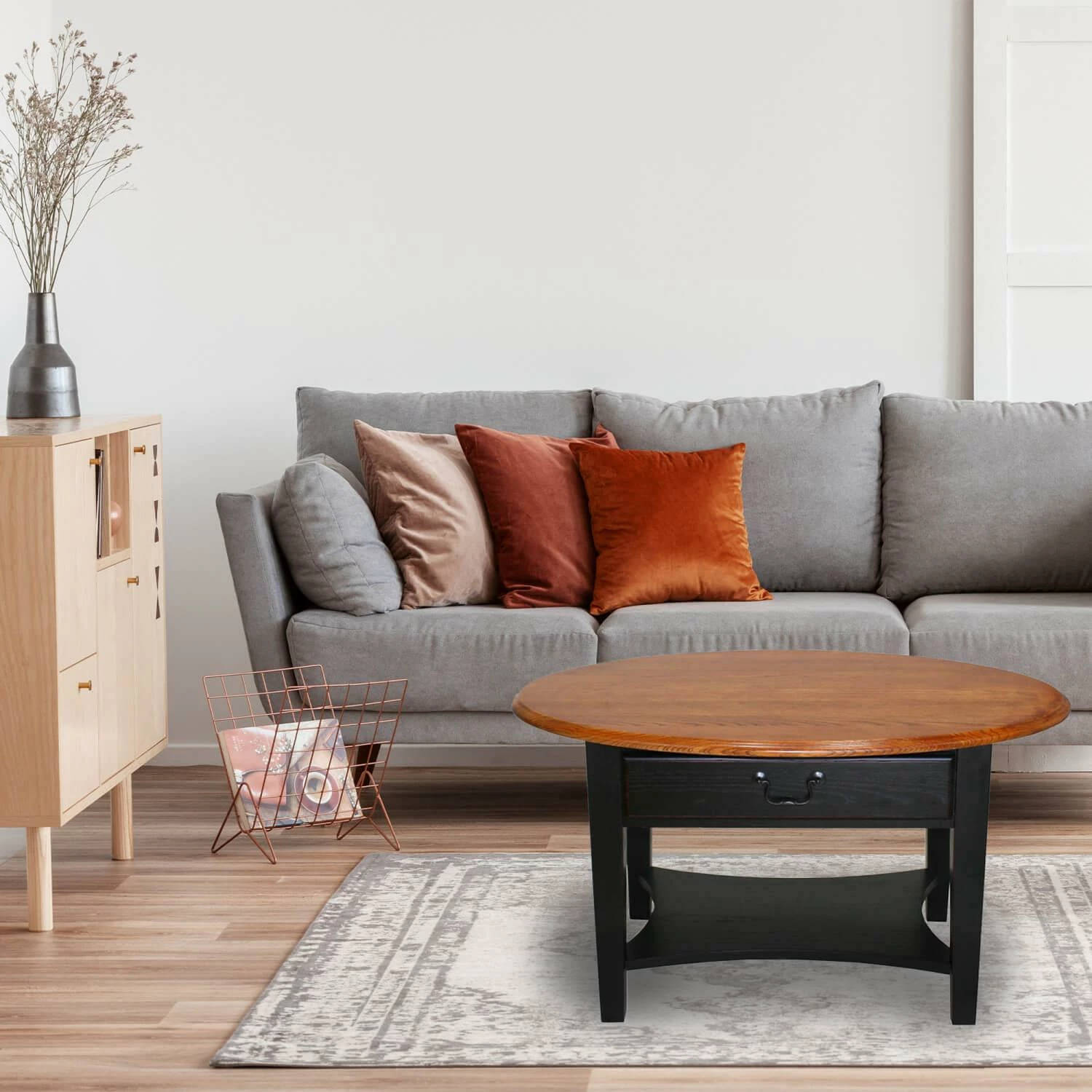 Need a coffee table in a compact space? Consider this oval shape table which will keep to itself no sharp corners to bump against, a tightly cropped t…