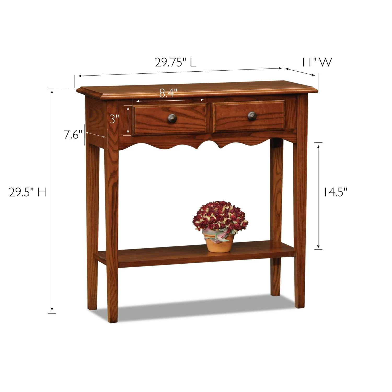 This little gem offers two drawers for the things you don t want to see and a lower display shelf for the things you don t. Compact silhouette is tailor made for hallways and small foyers. Designed and manufactured by Leick Home, the trusted source for quality home furnishings for every taste and budget.