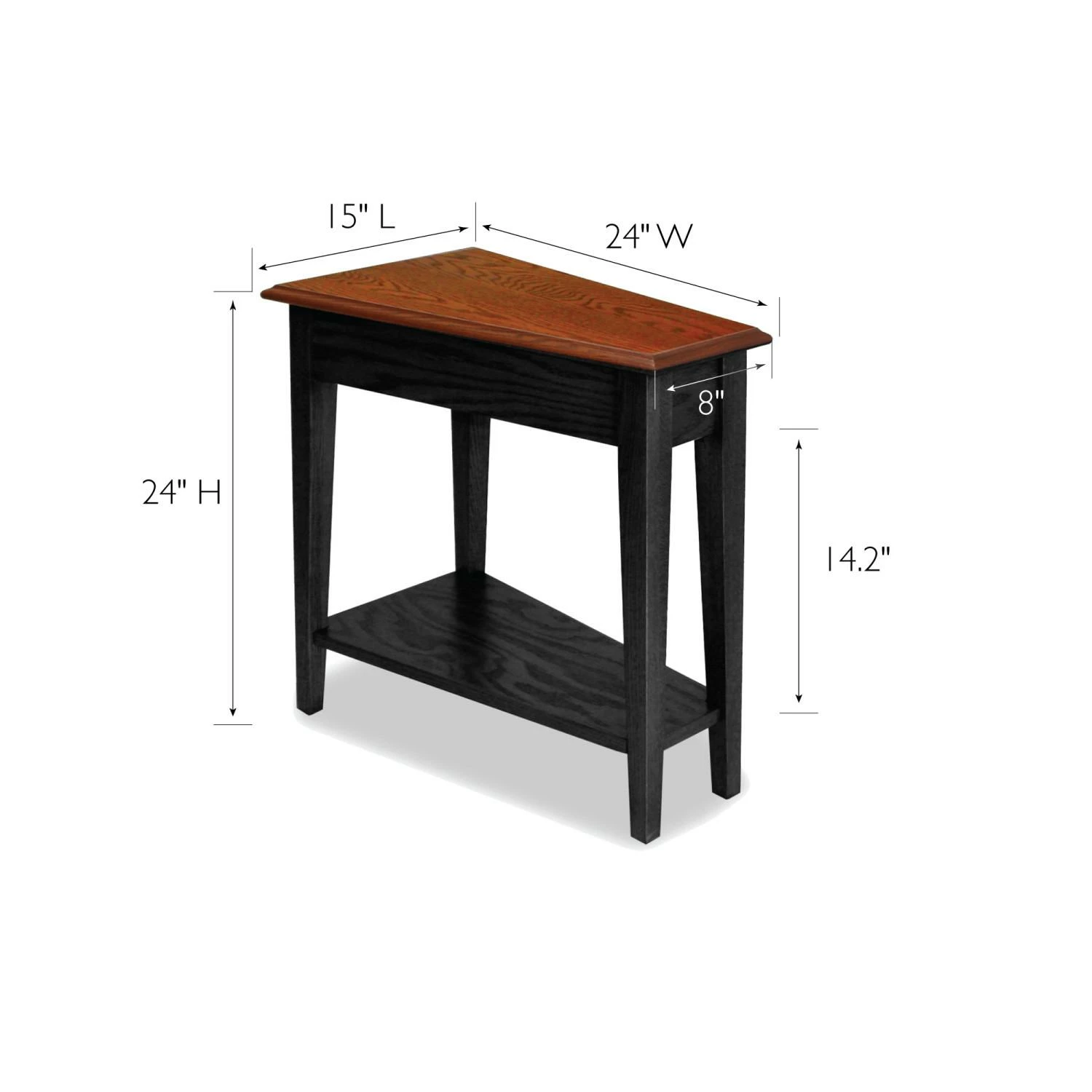 An adaptable slate finish, designed to complement many popular color and furnishing approaches, make this tapered, wedge table an ultimately versatile design along side recliners and other seating pieces. Scaled to fit most anywhere, this table layers on the function with a useful lower display shelf. Designed and manufactured by Leick Home, the trusted source for quality home furnishings for every taste and budget.