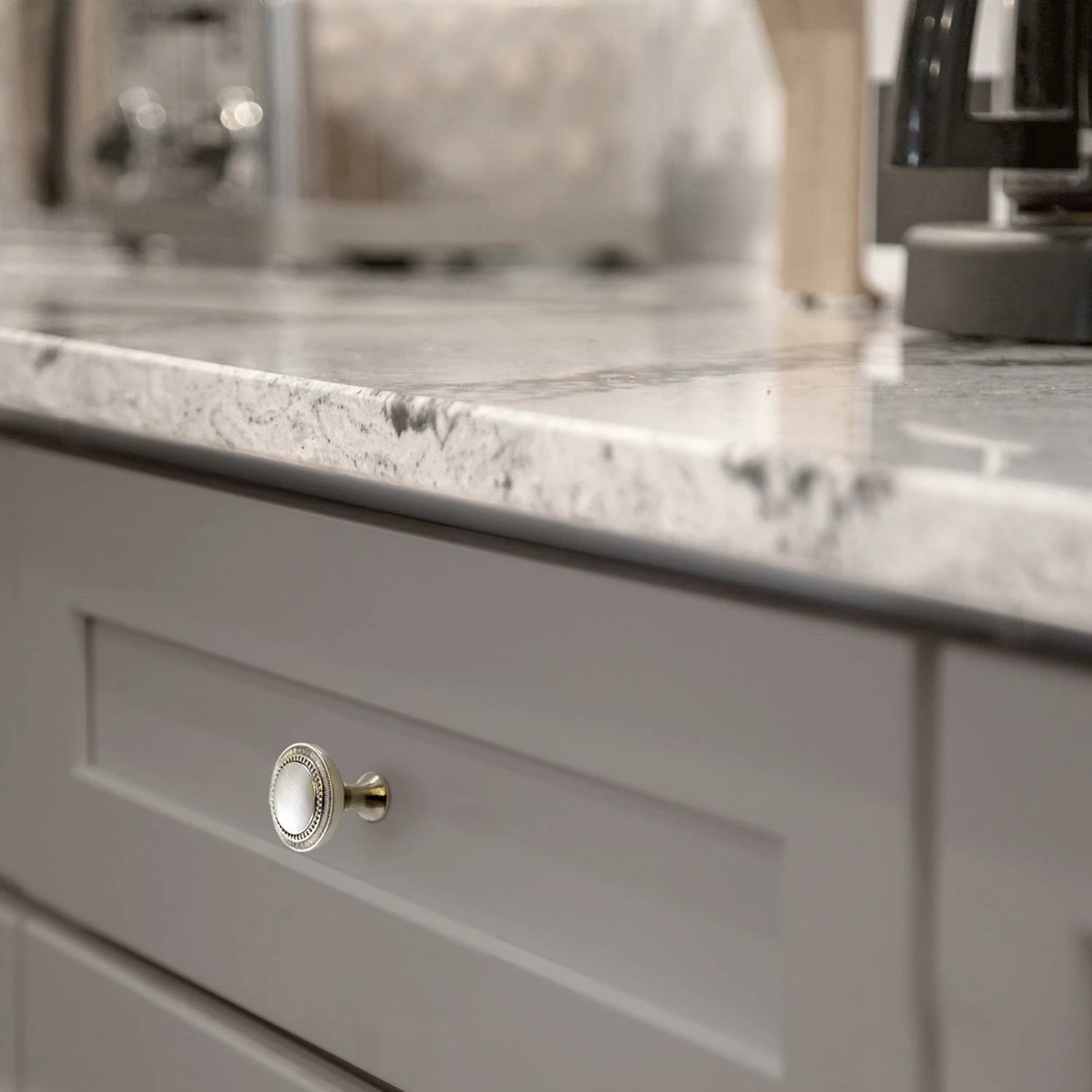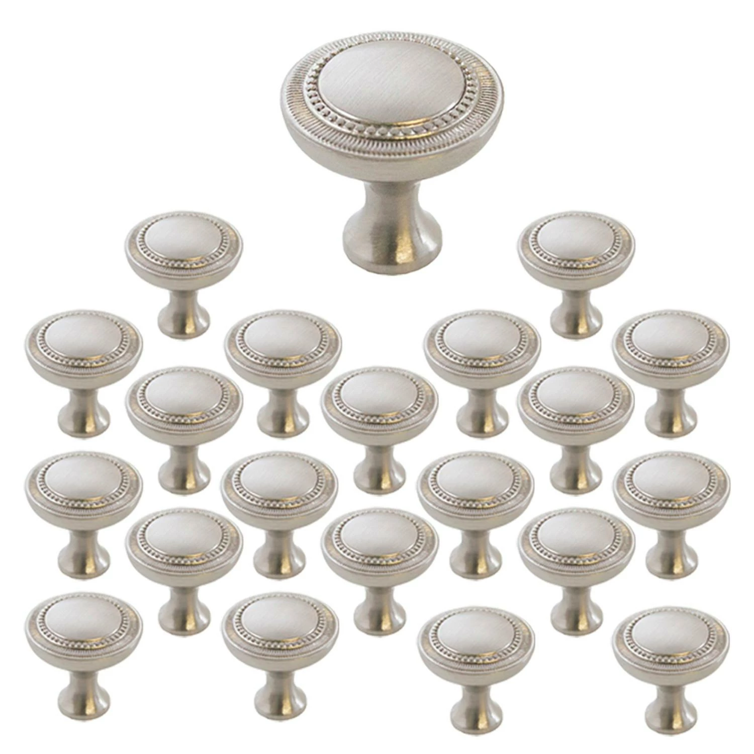 The Design House 190066 Regal Cabinet Knob is made for all cabinet types and installs easily. Features a brushed nickel finish and is ideal for use in bathrooms, kitchens, closets and more. The finish and knob add a shabby chic aesthetic to any room of the house. Crafted of 100-percent aluminum with hardware included this item measures 1-1/4-inches with a 15 mm base. Designed and manufactured by Design House, the trusted source for quality lighting, hardware, plumbing, kitchen, and bath products for every taste and budget.