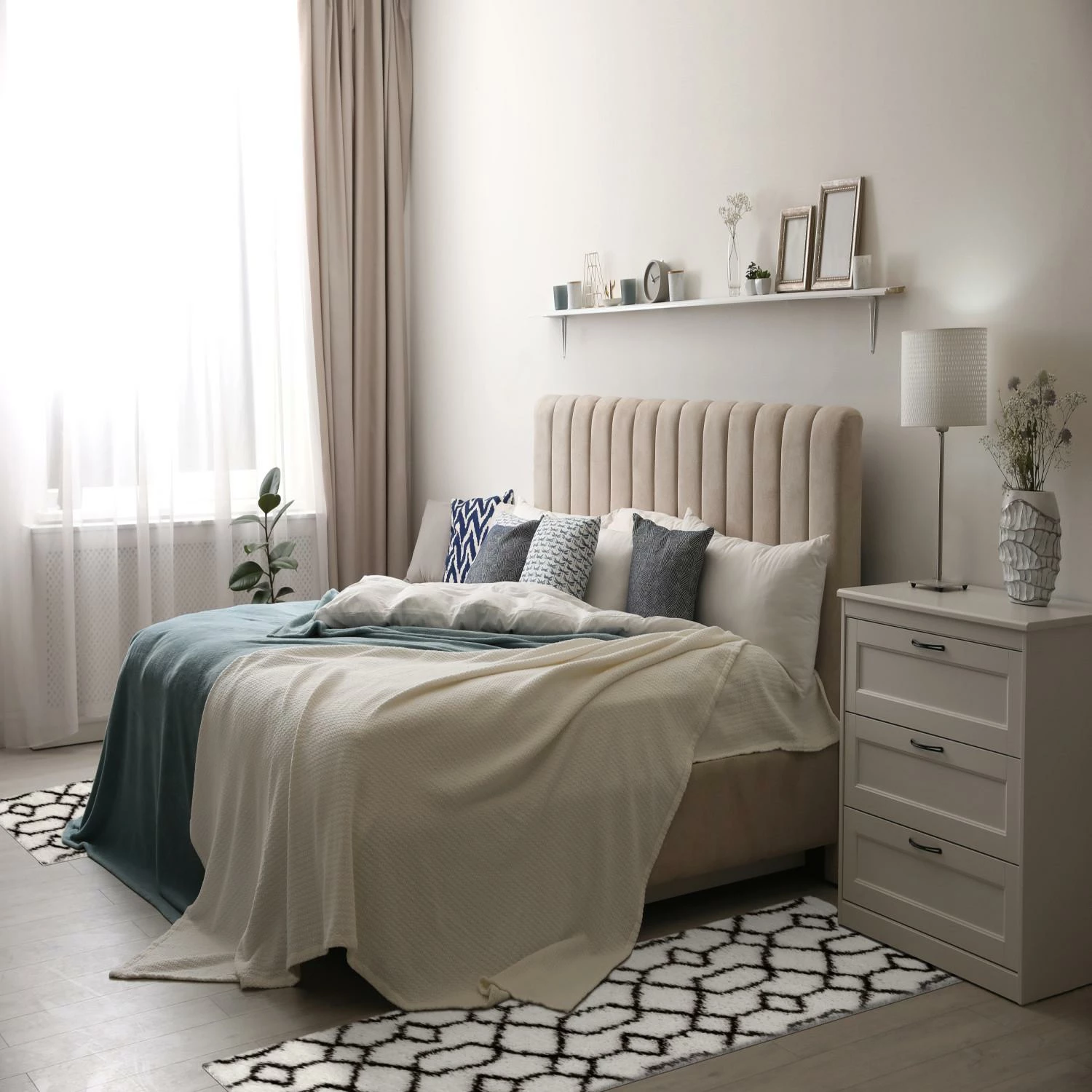 - Soft synthetic fibers offer warmth to a room and a luxurious feel underfoot