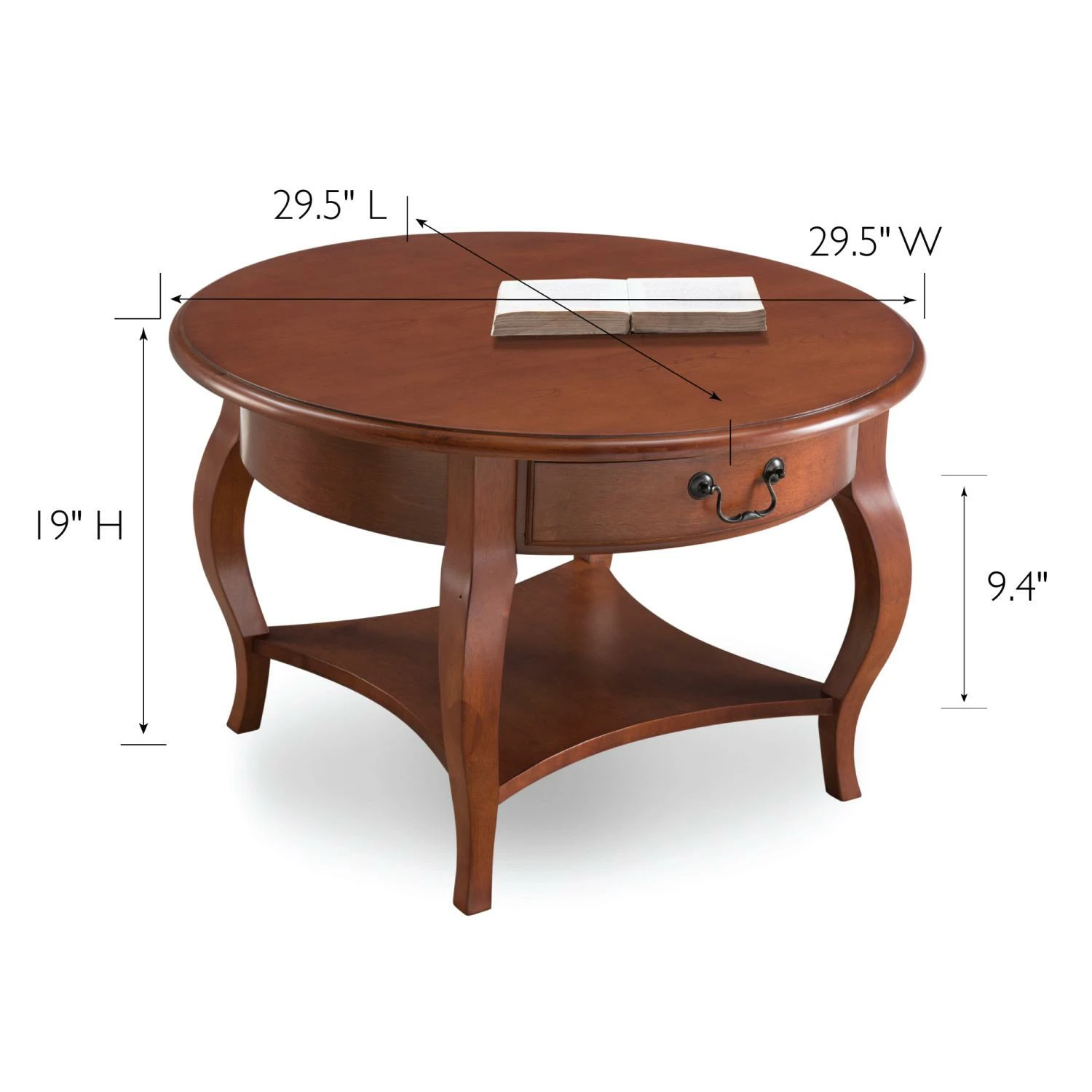 Graceful cabriole legs and a soft, brown cherry finish bring the French countryside indoors in this compact coffee table. Drawer storage and plentiful display options make for a high impact presentation. The solid wood construction ensures that this table will hold up to everyday use. Designed and manufactured by Leick Home, the trusted source for quality home furnishings for every taste and budget.