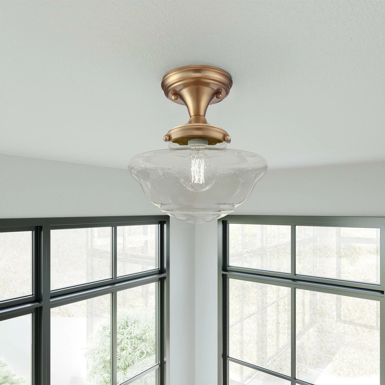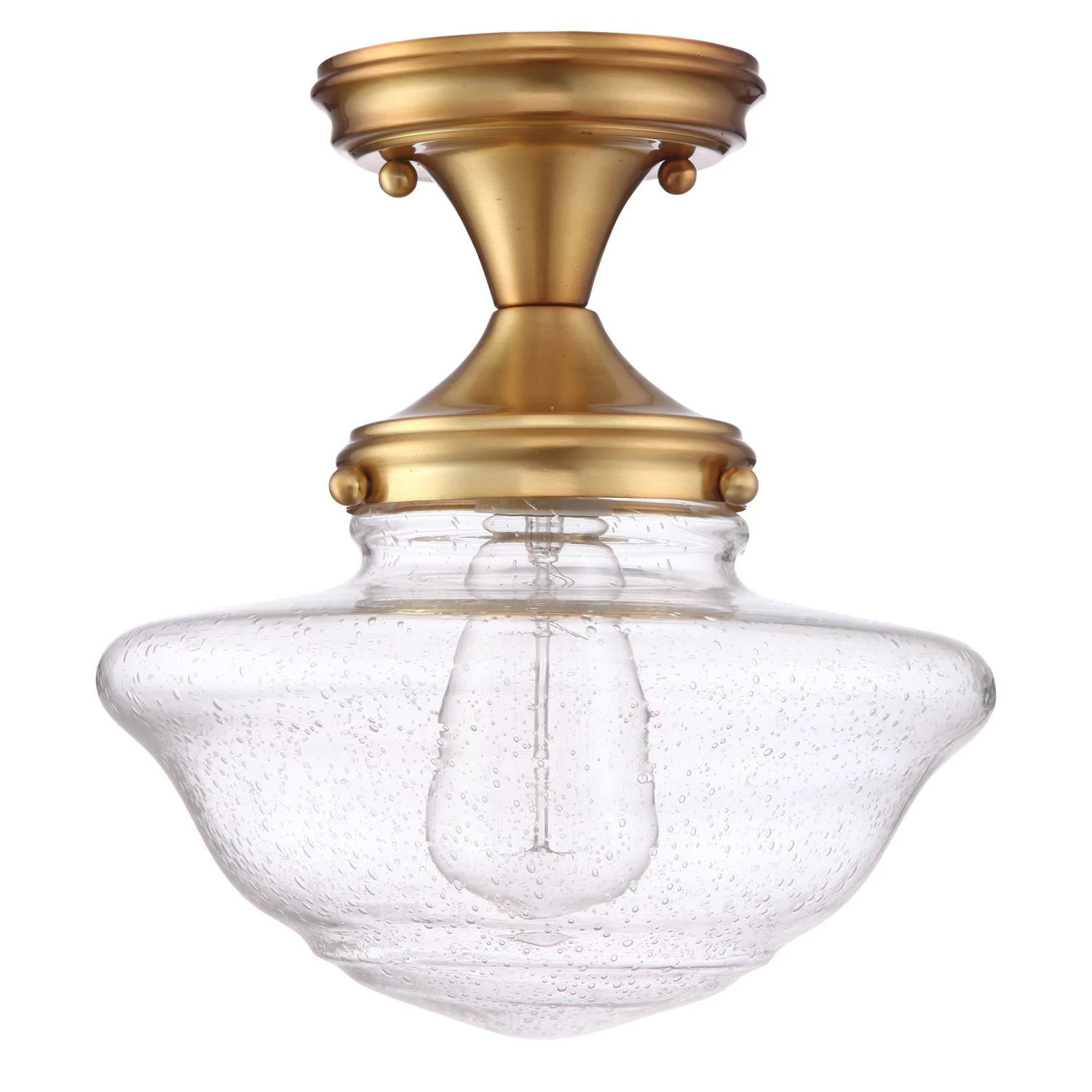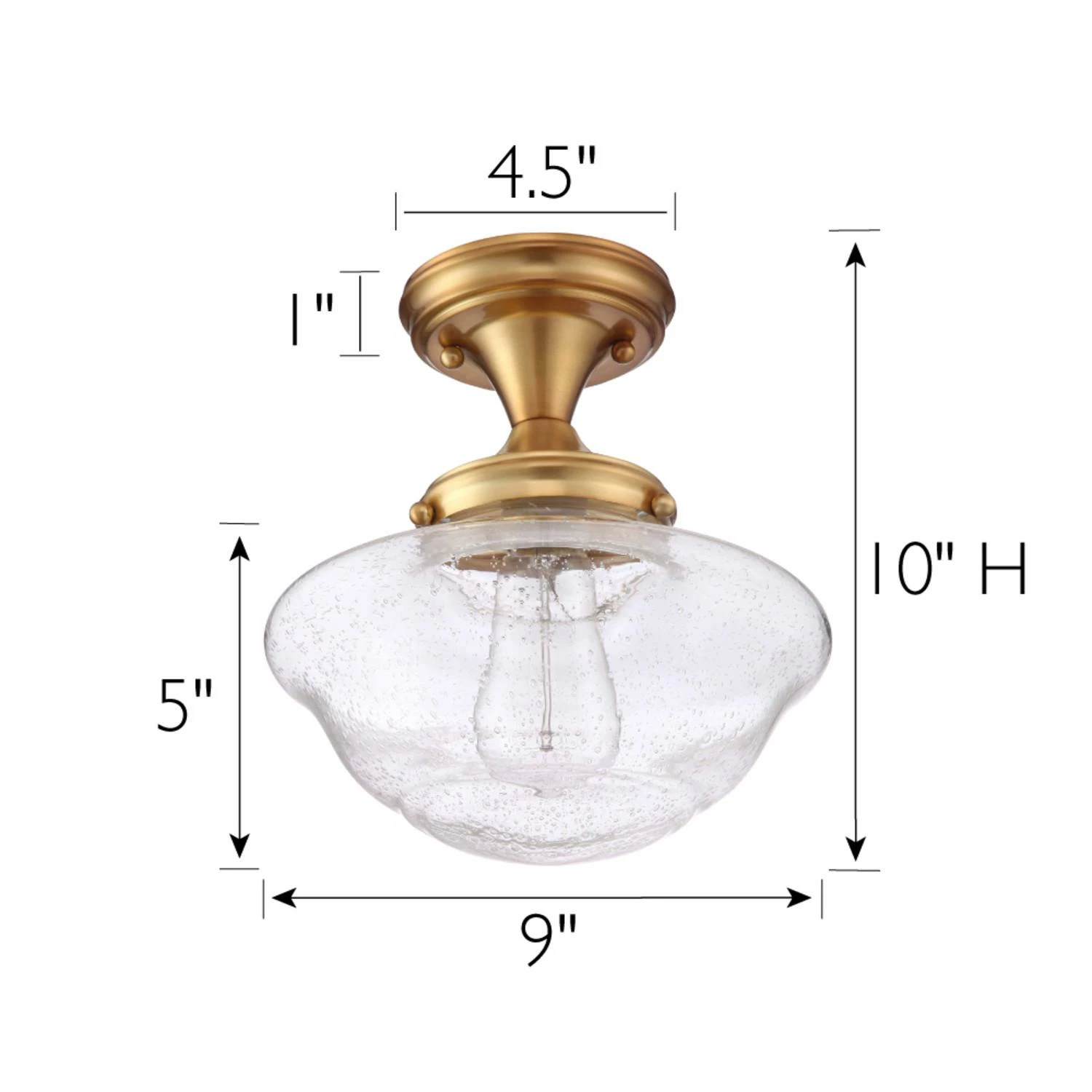 - Vintage Inspired Ceiling Light: Ideal for foyers, kitchens, bedrooms, hallways, master closets and more, this classic ceiling light has a modern satin gold finish with a 9-inch clear, seedy glass shade
