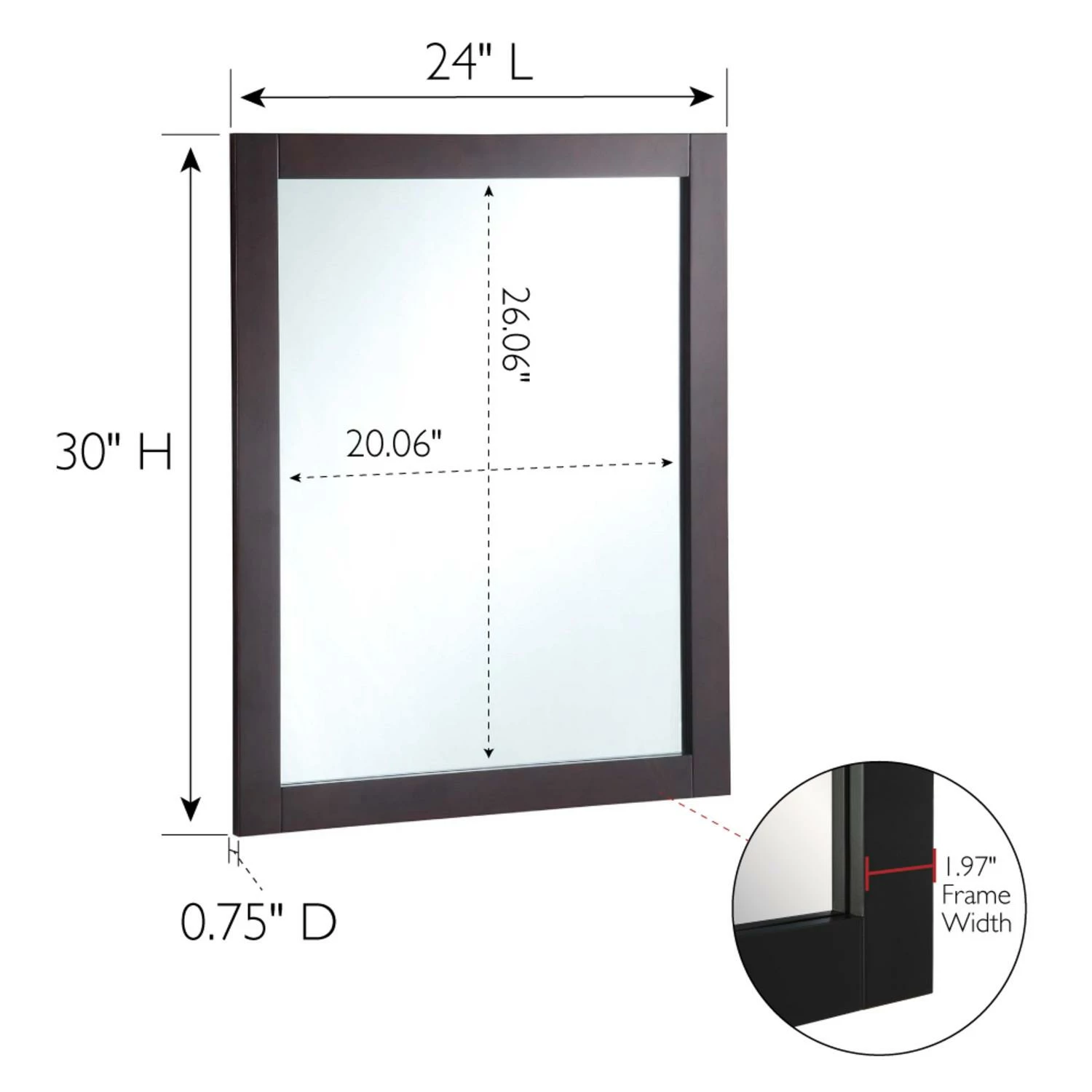 The Design House Shorewood 30-Inch Rectangle Wooden Espresso Wall Mirror is the essential piece for all of your daily routines. This espresso wall mount hanging mirror is made of glass and lightweight yet highly durable wood. The mirror is inset within the frame, creating increased depth and dimension to enhance the look of your space. This wall mirror’s minimalist design creates a versatile look you can use as a vanity mirror in bathrooms and bedrooms or as a decorative mirror in entryways, hallways, living rooms, office spaces, hotel rooms, and more. Measuring 30 inches by 24 inches, this traditional decorative mirror is inset within the wooden frame, providing increased depth and dimension that enhances your space. The pine wood frame with an espresso finish is perfect for farmhouse, contemporary, or traditional decor styles. This accent mirror boasts a fully functional design, which you can use to style empty wall spaces, enhance natural light, and create the illusion of more space. This Shorewood mirror includes mounting hardware for a smooth installation process. It is made of medium density fiberboard backing to be more warp resistant compared to a solid wood backing. Ships to your home in improved packaging, ensuring your mirror gets delivered safely without damage. Customer satisfaction has been our priority for 150 years; this mirror comes with a 1-year limited warranty so you can rest assured your purchase is risk-free. Designed and manufactured by Design House, the trusted source for quality lighting, hardware, plumbing, kitchen, and bath products for every taste and budget.