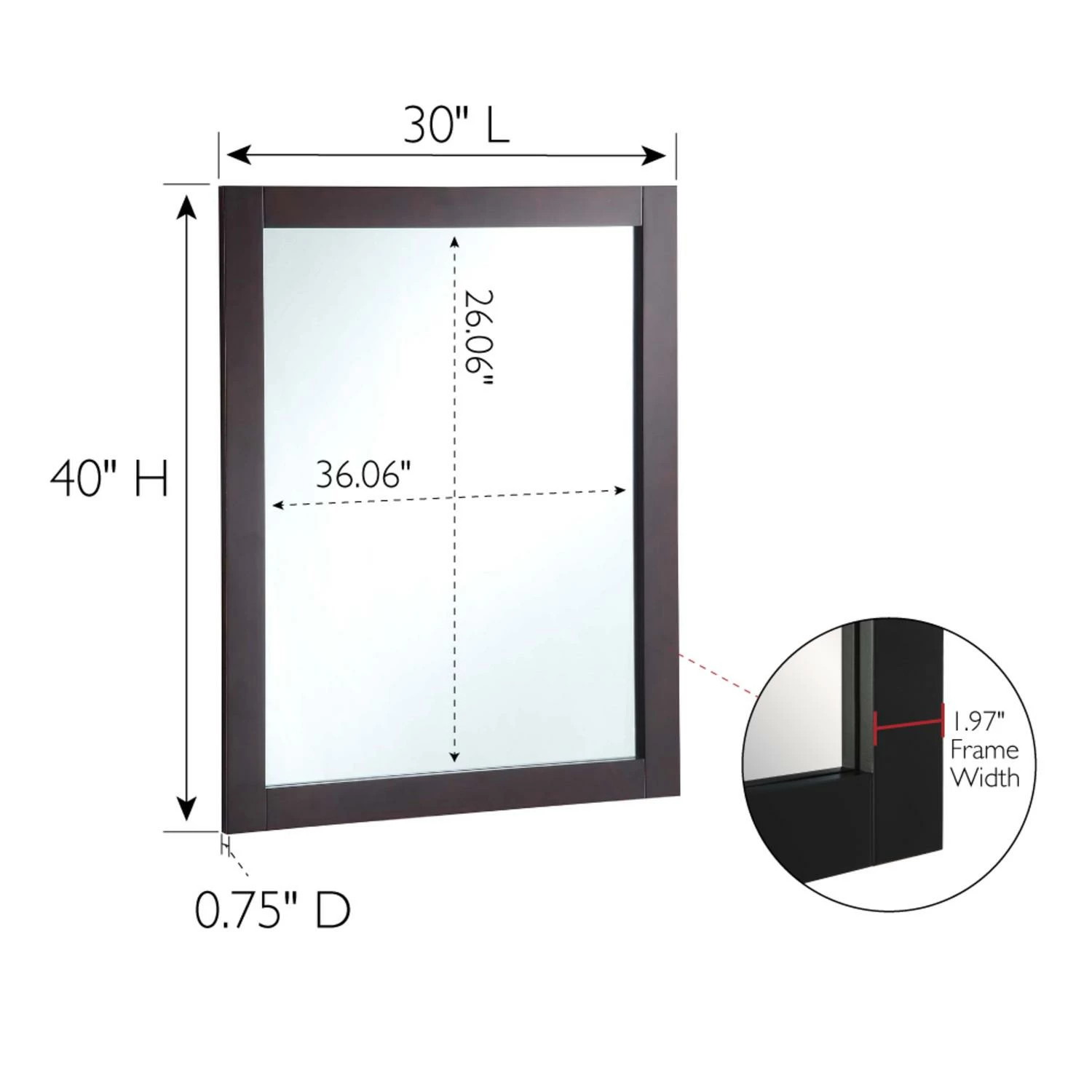 The Design House Shorewood 40-Inch Rectangle Wooden Espresso Wall Mirror is the essential piece for all of your daily routines. This espresso wall mount hanging mirror is made of glass and lightweight yet highly durable wood. The mirror is inset within the frame, creating increased depth and dimension to enhance the look of your space. This wall mirror’s minimalist design creates a versatile look you can use as a vanity mirror in bathrooms and bedrooms or as a decorative mirror in entryways, hallways, living rooms, office spaces, hotel rooms, and more. Measuring 40 inches by 30 inches, this traditional decorative mirror is inset within the wooden frame, providing increased depth and dimension that enhances your space. The pine wood frame with an espresso finish is perfect for farmhouse, contemporary, or traditional decor styles. This accent mirror boasts a fully functional design, which you can use to style empty wall spaces, enhance natural light, and create the illusion of more space. This Shorewood mirror includes mounting hardware for a smooth installation process. It is made of medium density fiberboard backing to be more warp resistant compared to a solid wood backing. Ships to your home in improved packaging, ensuring your mirror gets delivered safely without damage. Customer satisfaction has been our priority for 150 years; this mirror comes with a 1-year limited warranty so you can rest assured your purchase is risk-free. Designed and manufactured by Design House, the trusted source for quality lighting, hardware, plumbing, kitchen, and bath products for every taste and budget.