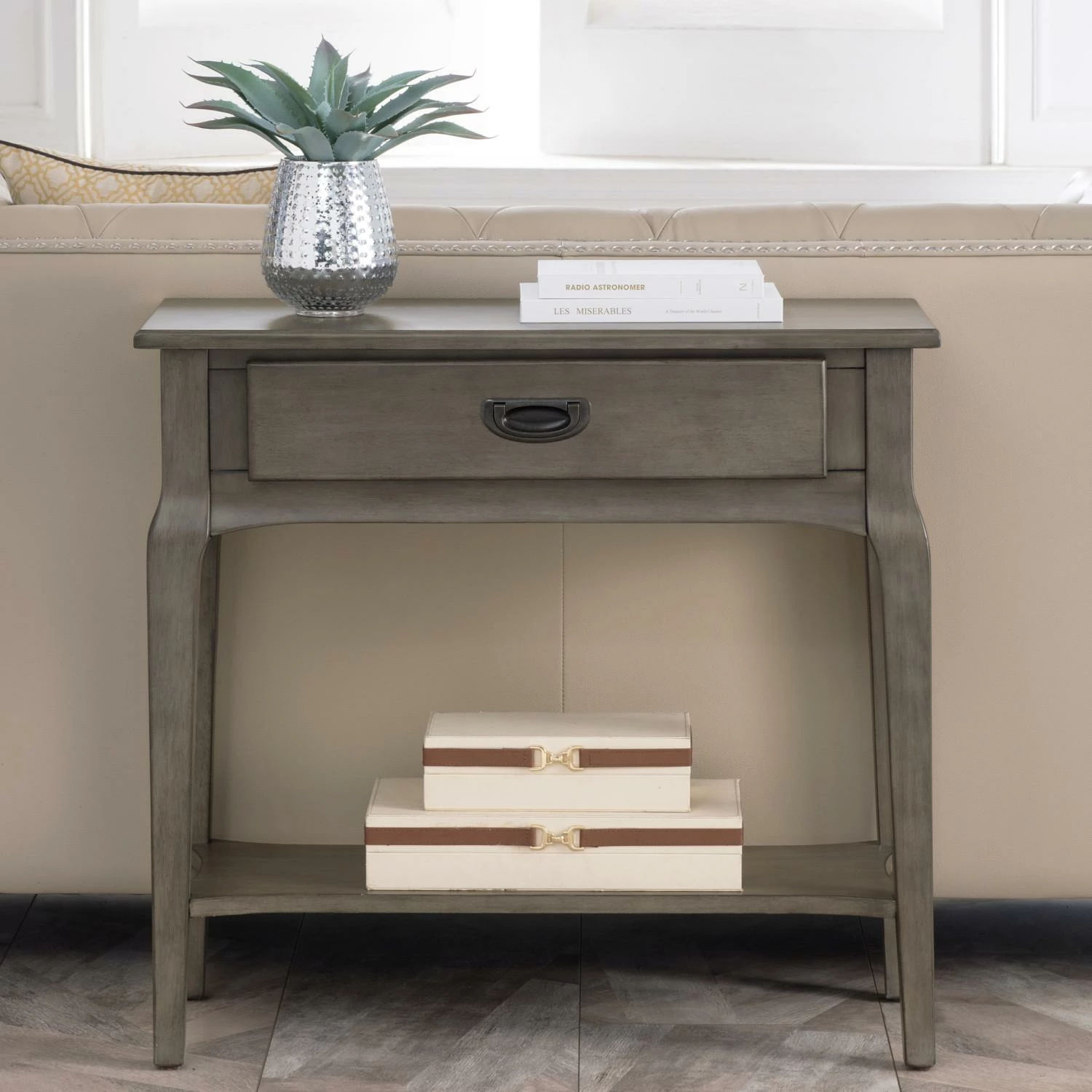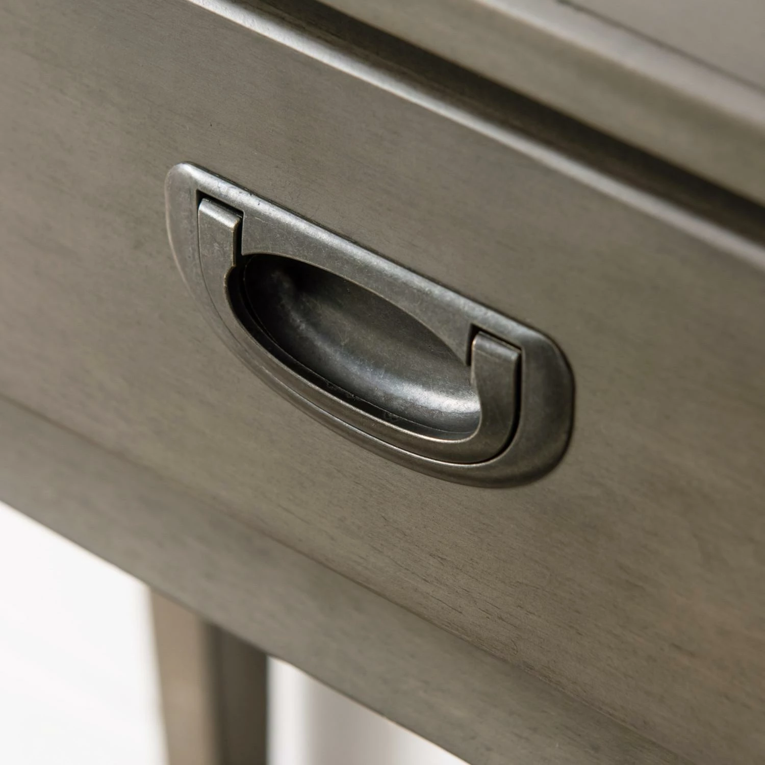 Unmistakeably beautiful features–flared skirts meeting curvy hips over delicately contoured legs–are the spellbinding elements in these edgy new table designs. A soft, Smoky Gray finish is bejeweled with blackened, flush design drawer hardware and easy, softened edges. The simple assembly process brings sturdy, wood furniture to your home in minutes. Designed and manufactured by Leick Home, the trusted source for quality home furnishings for every taste and budget.
