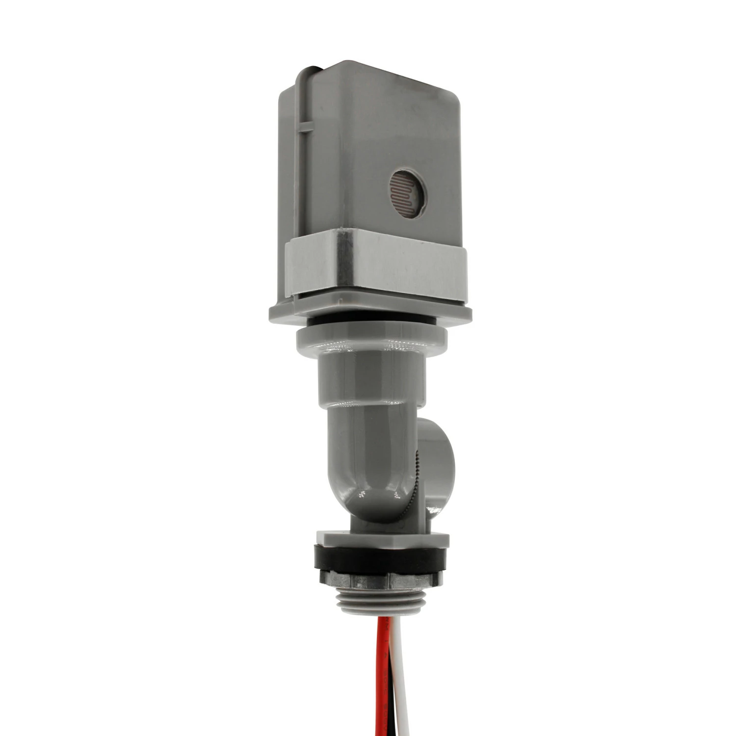 - Installs on standard outdoor light fixtures or electrical boxes for efficient dusk-to-dawn ON/OFF control; ½ in. threaded stem with zinc alloy locking nut and rubber gasket
