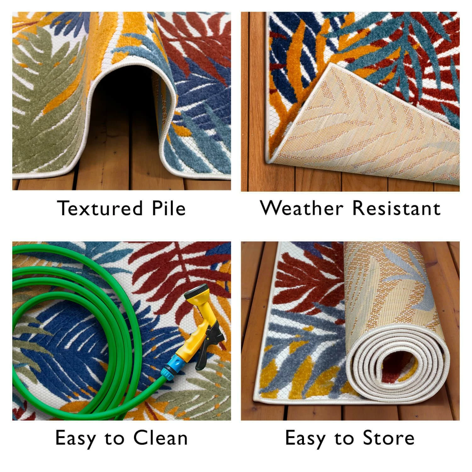 - 100% durable polypropylene yarns are stain, water and fade resistant