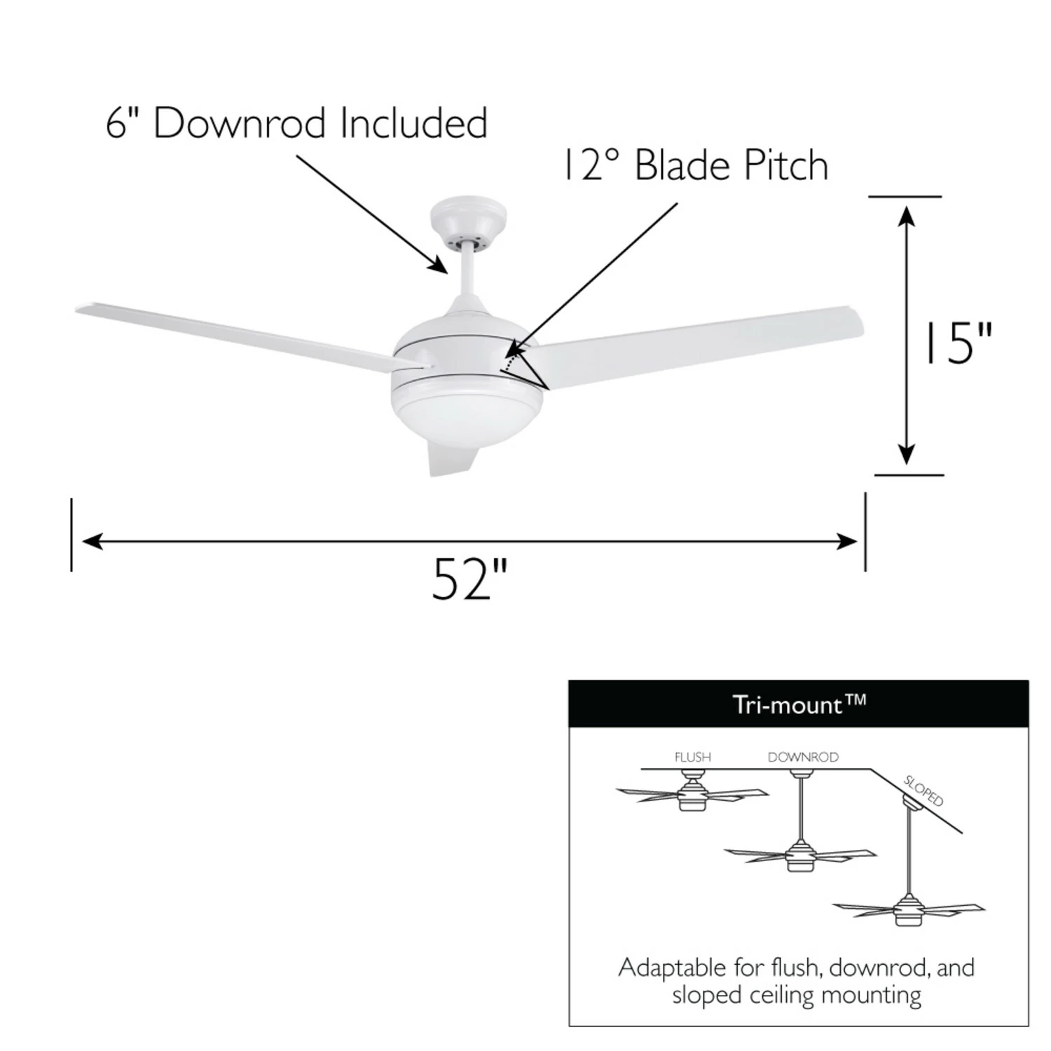 - CONTEMPORARY indoor 52-inch ceiling fan Ideal for medium to large sized rooms like living rooms, bedrooms and more