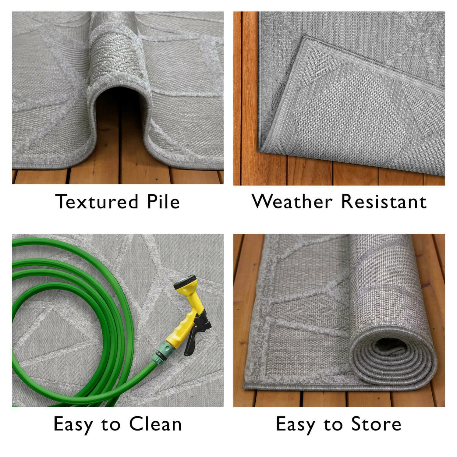 - 100% durable polypropylene yarns are stain, water and fade resistant